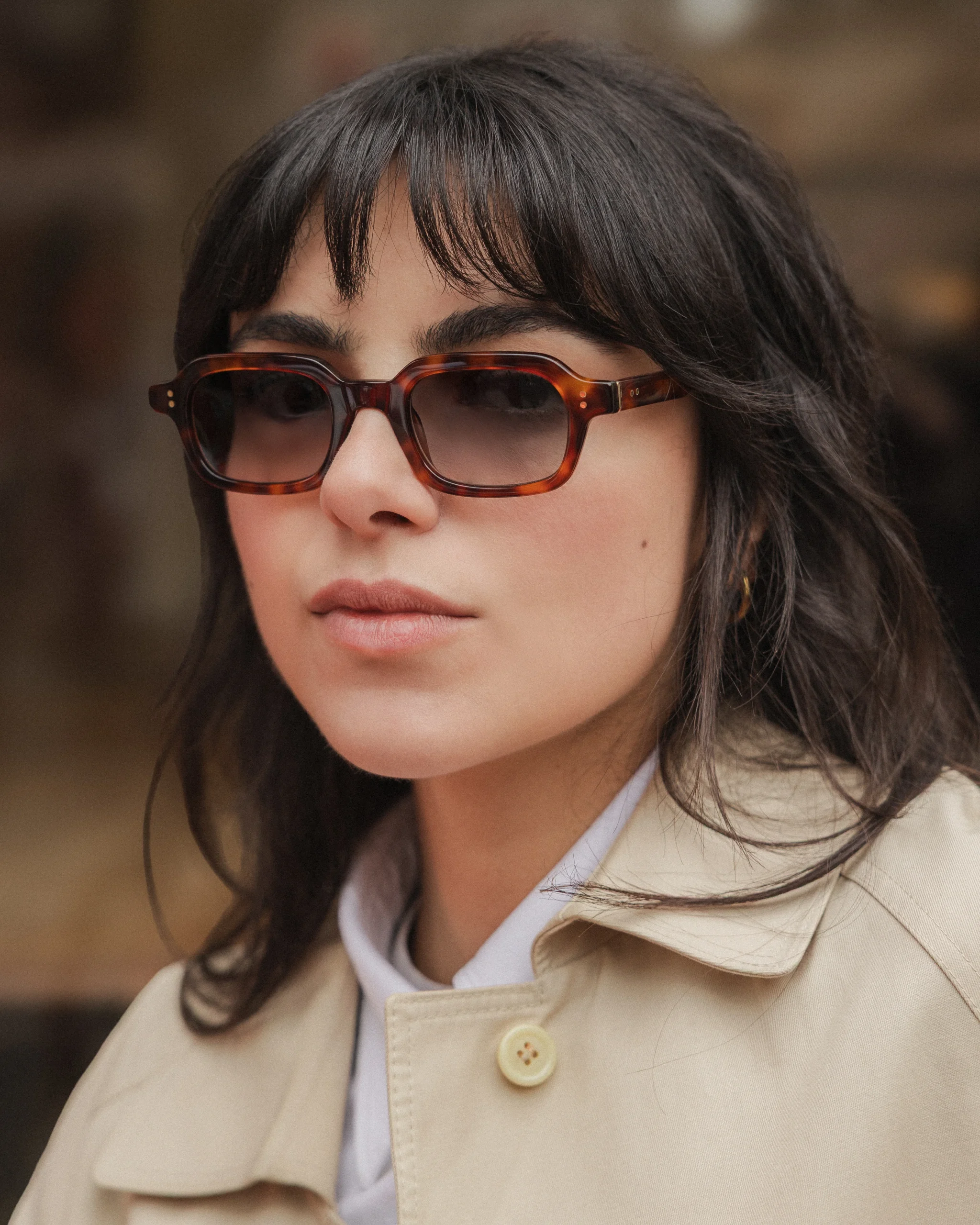La Alma Écaille et sa forme Rectangulaire convient aux visages ovales ou carrés, et peuvent trancher avec la rondeur d’un visage plutôt rond.