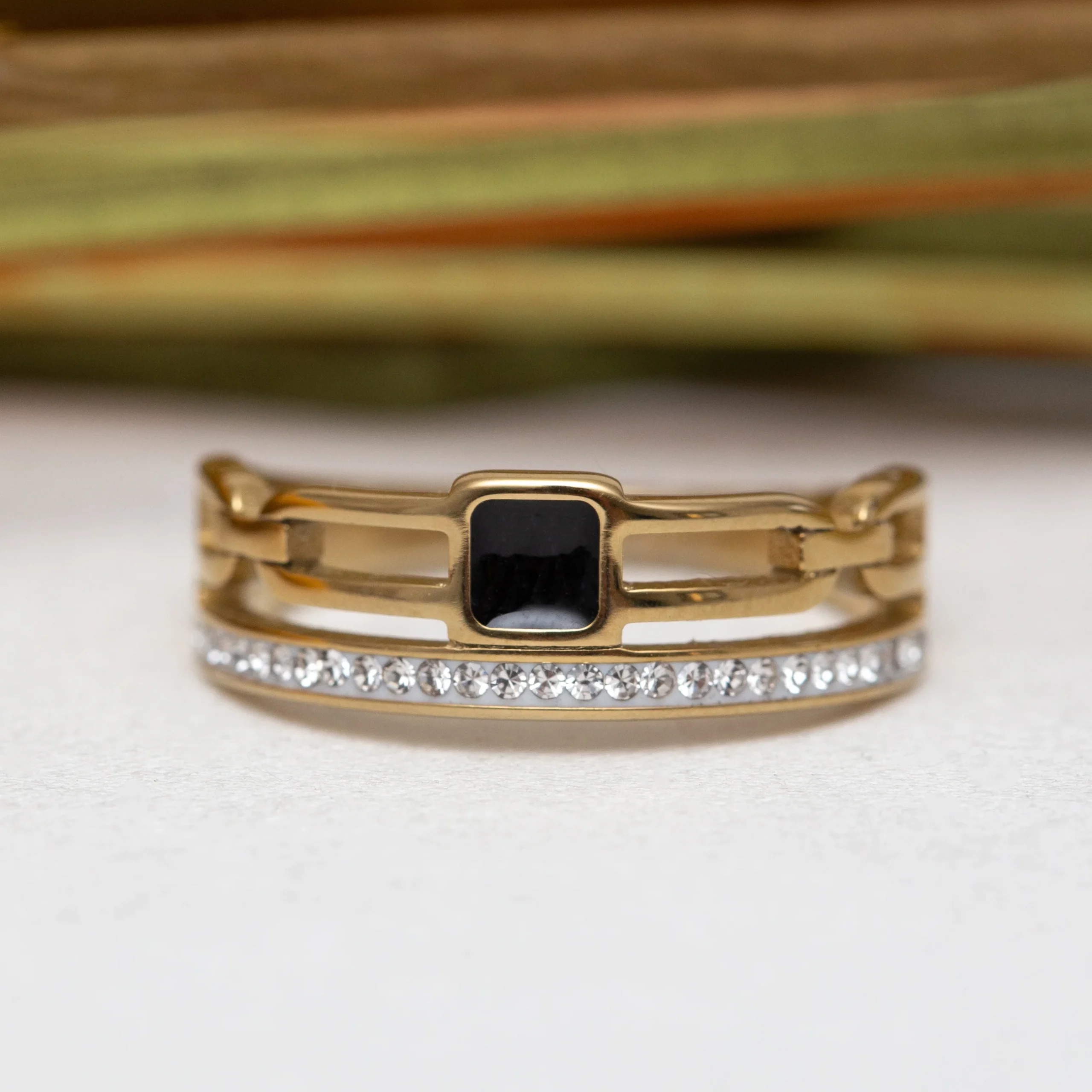 Bague acier dorée tendance