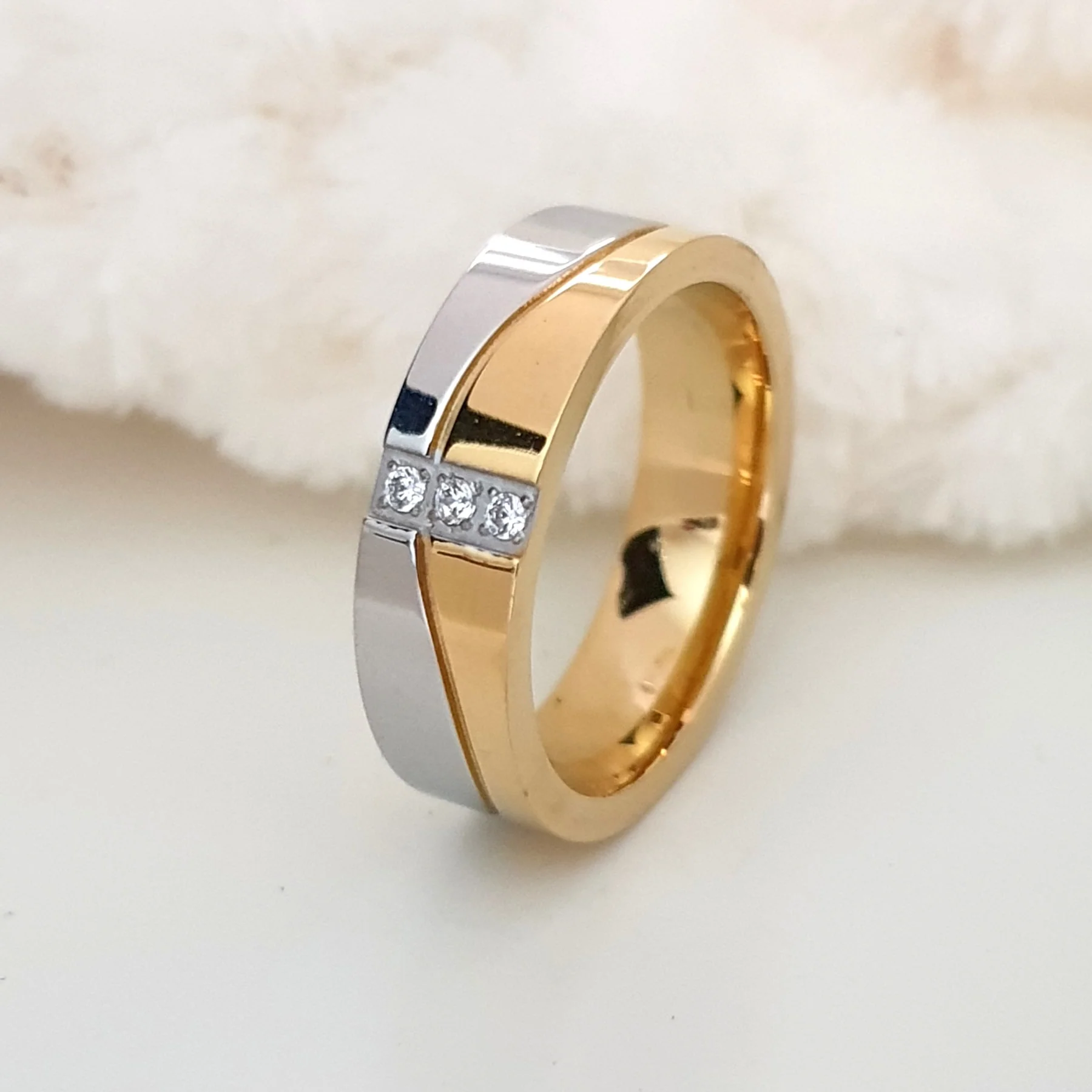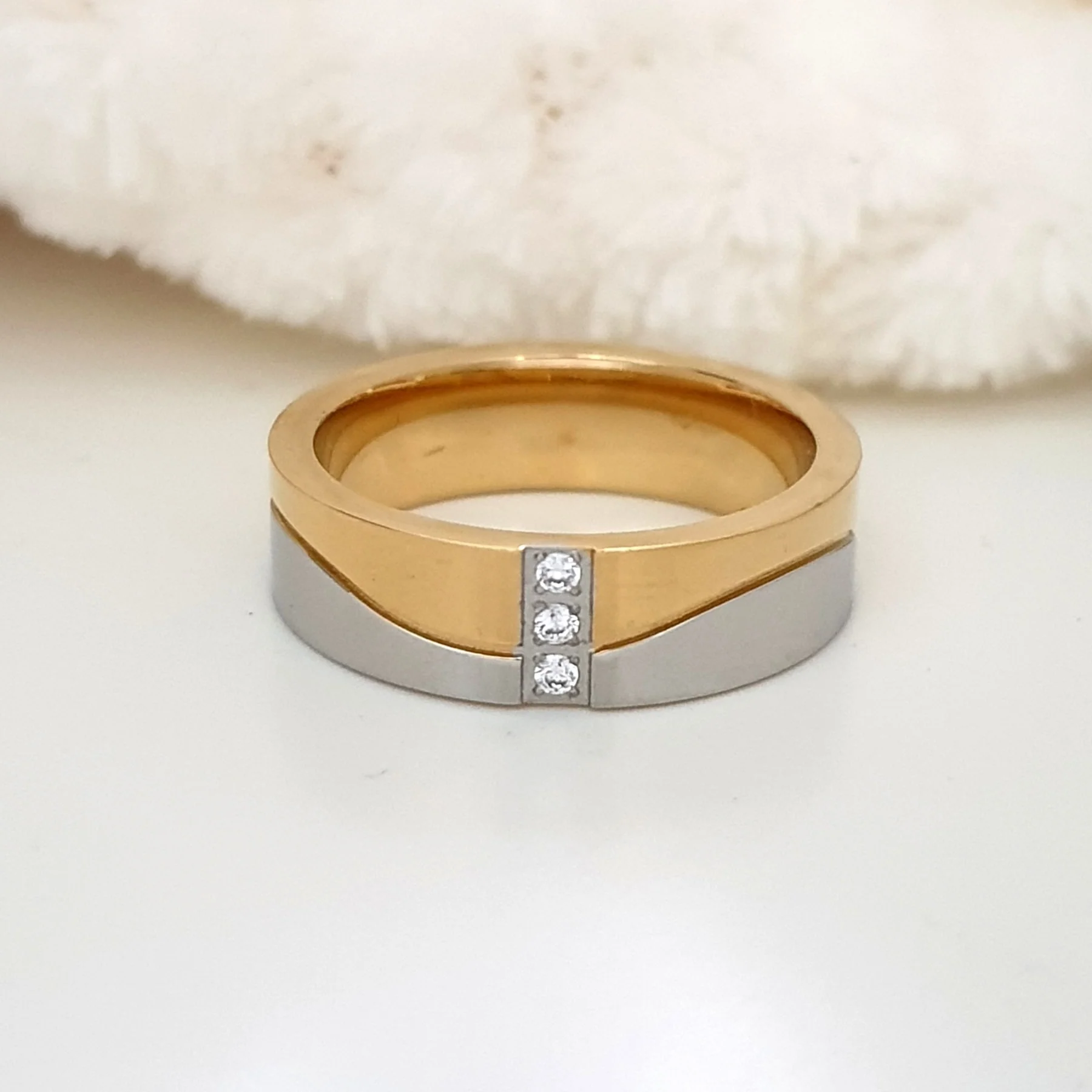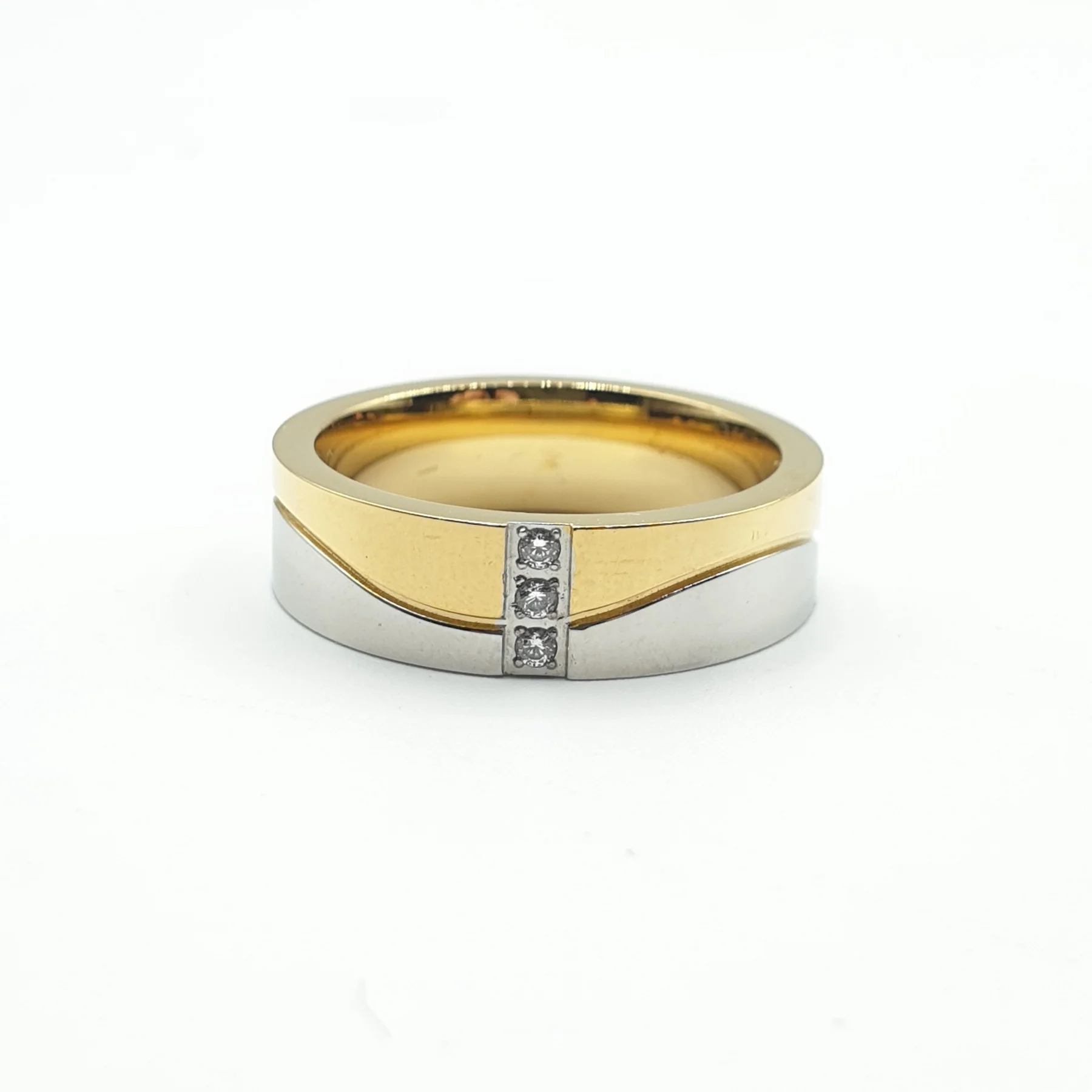 Bague acier inoxydable xp tendance 2 tons en vague 3 pierres