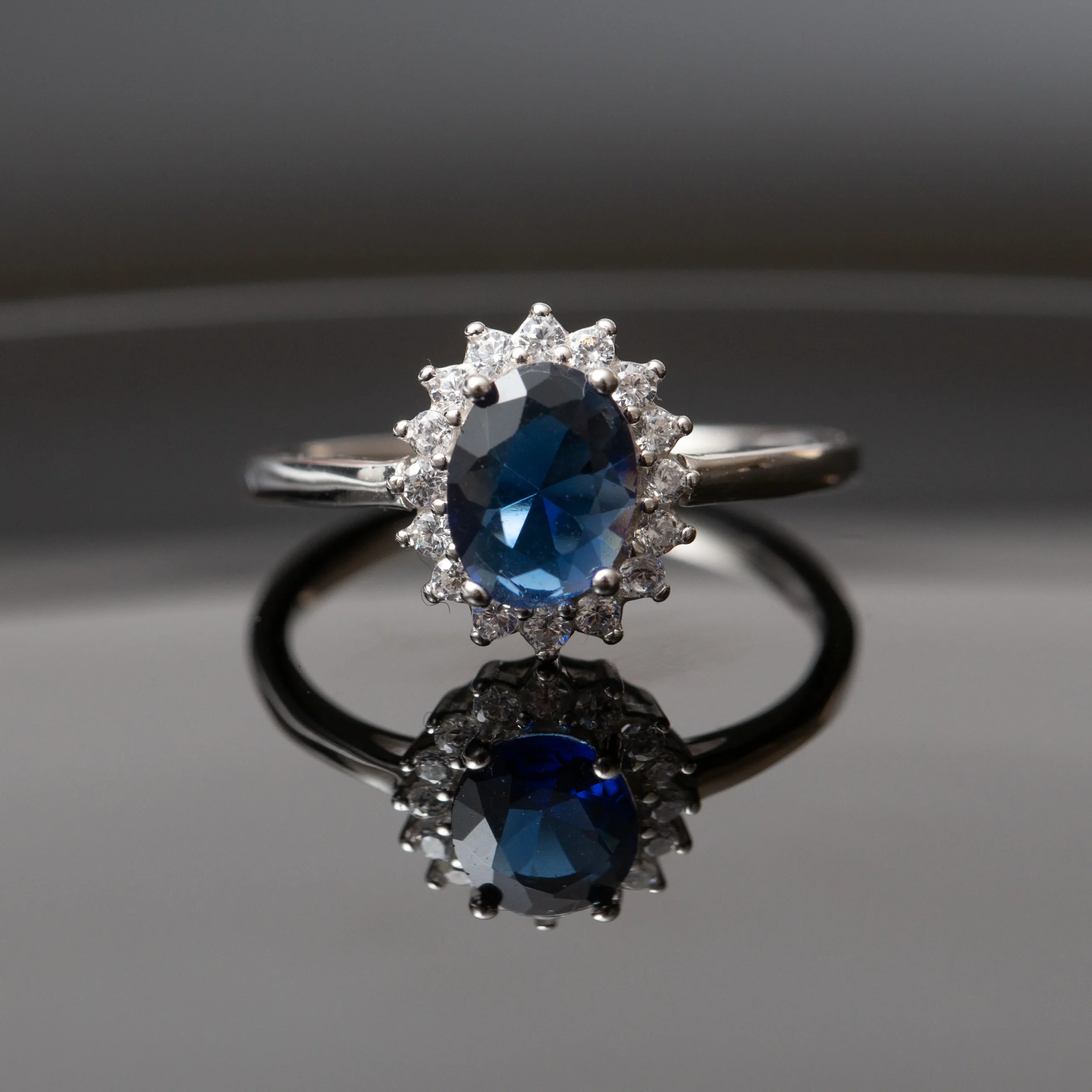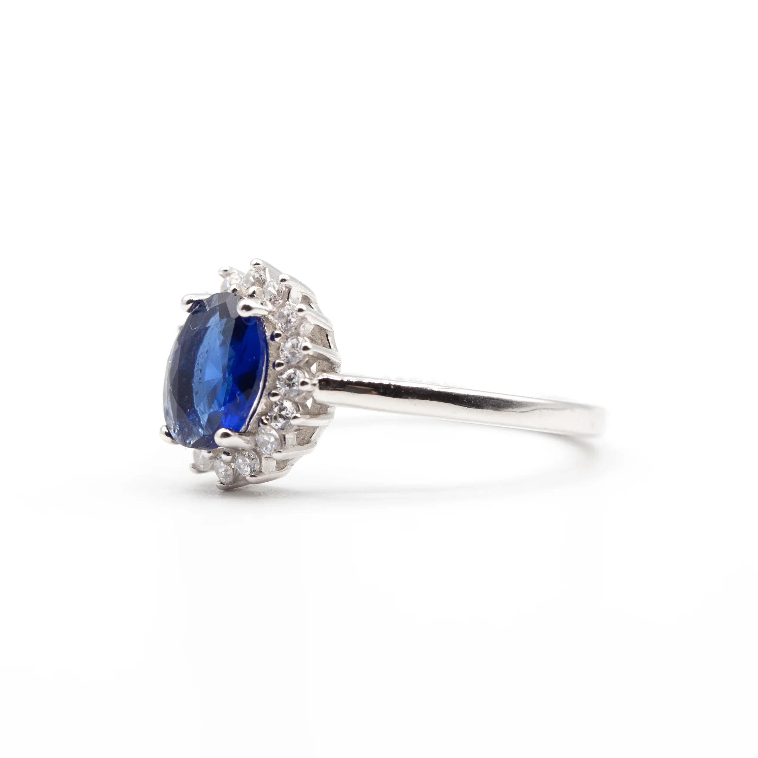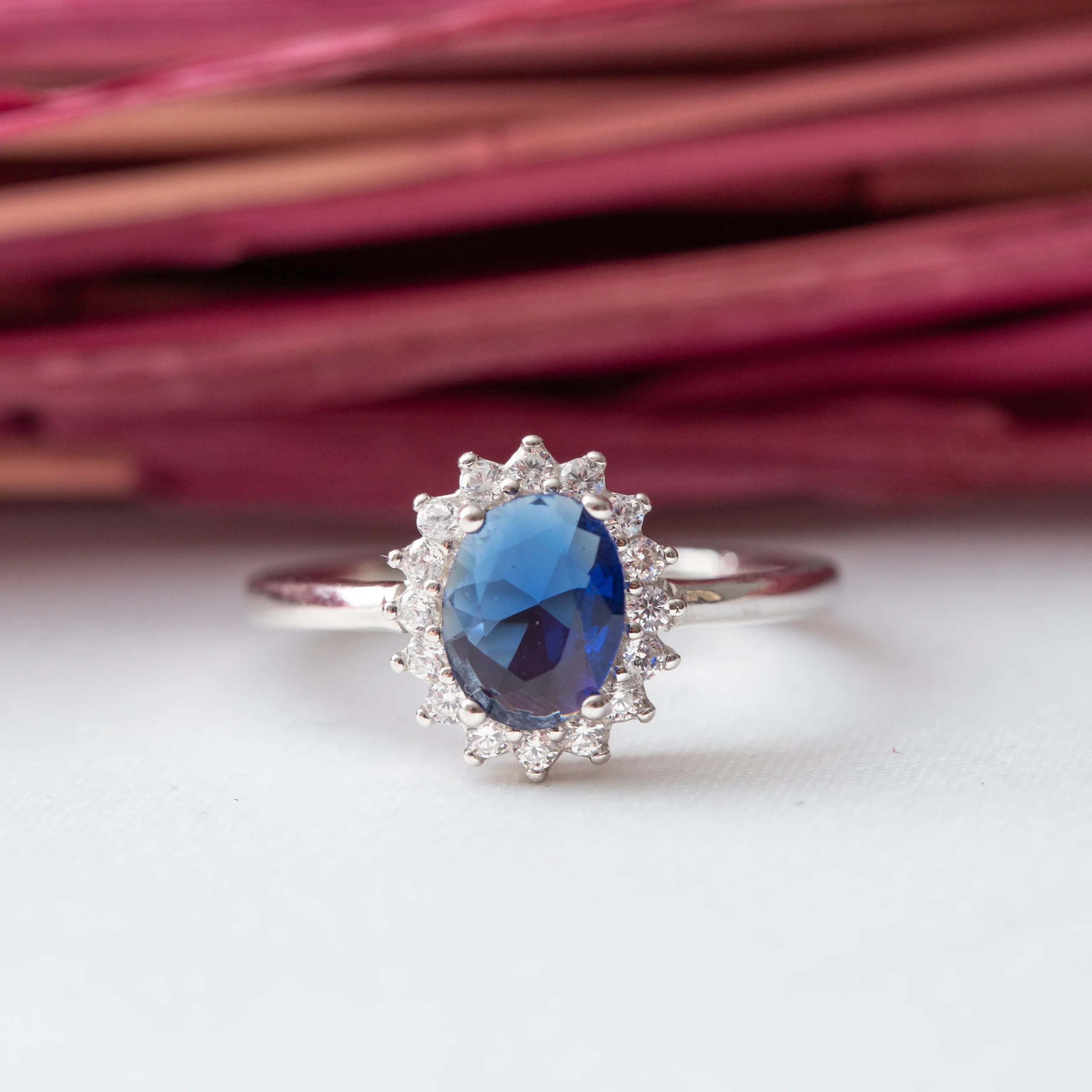 Bague argent rhodié garanti avec un motif fleuré bleu tendance pour cet été
