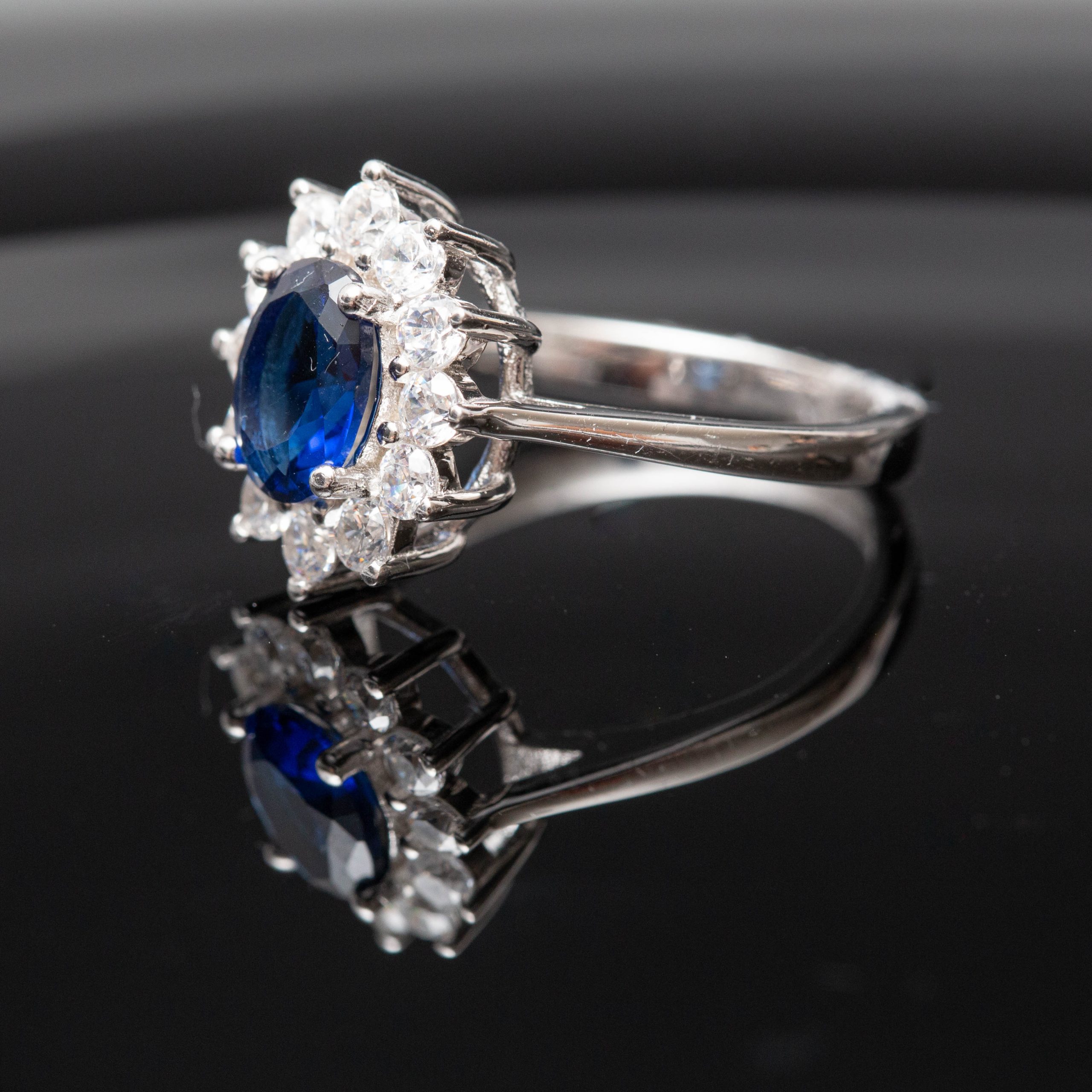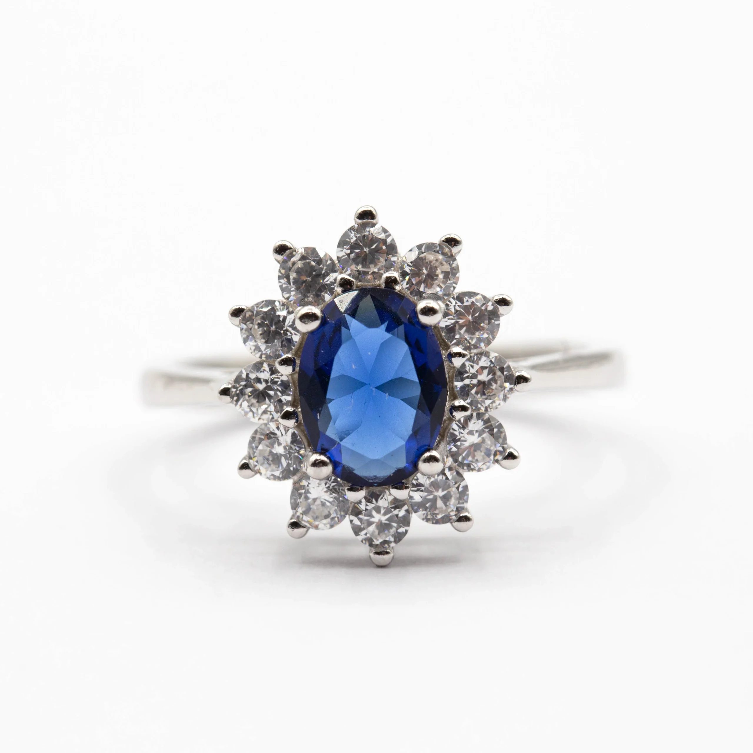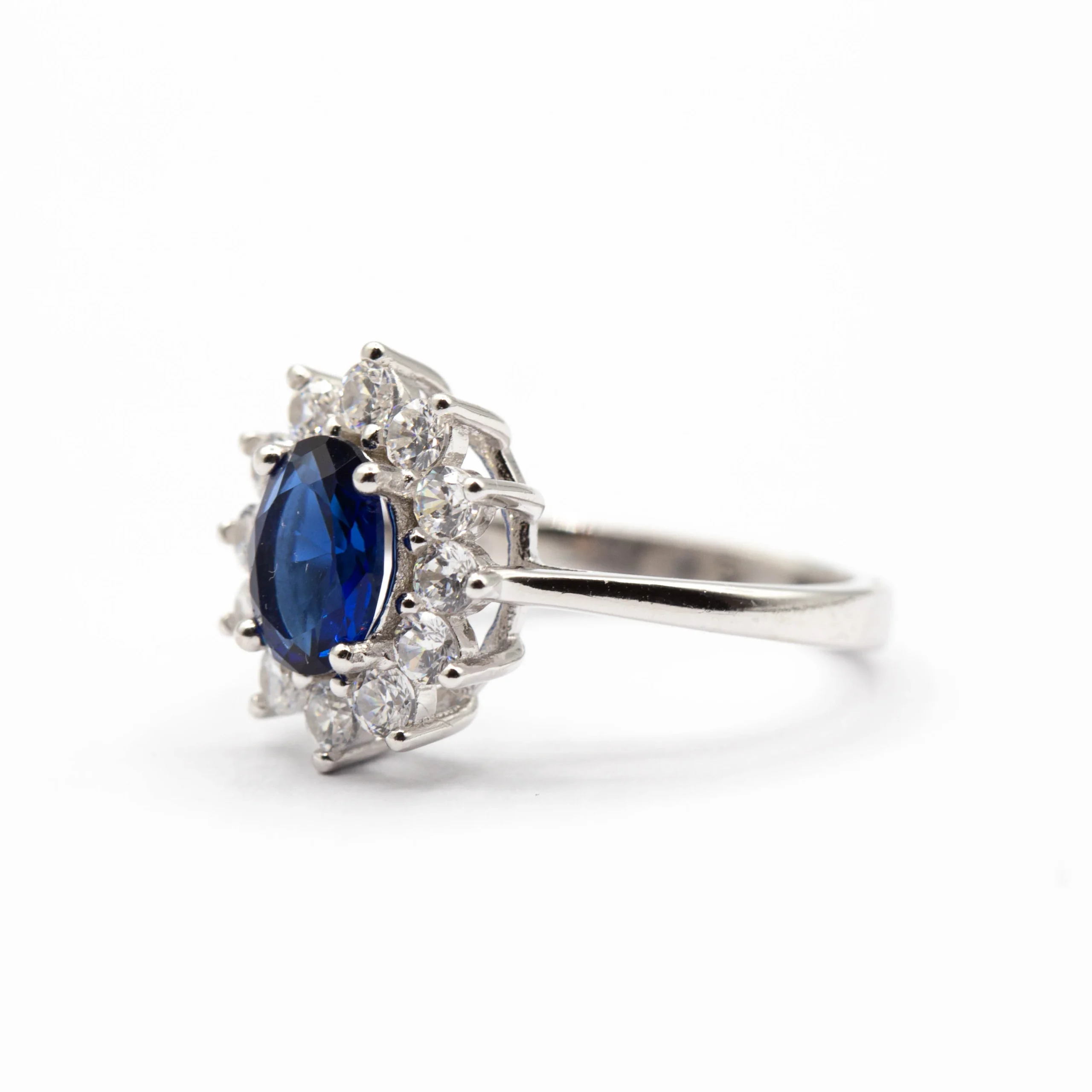 Bague argent Rhodié garanti avec une pierre Blue ovale