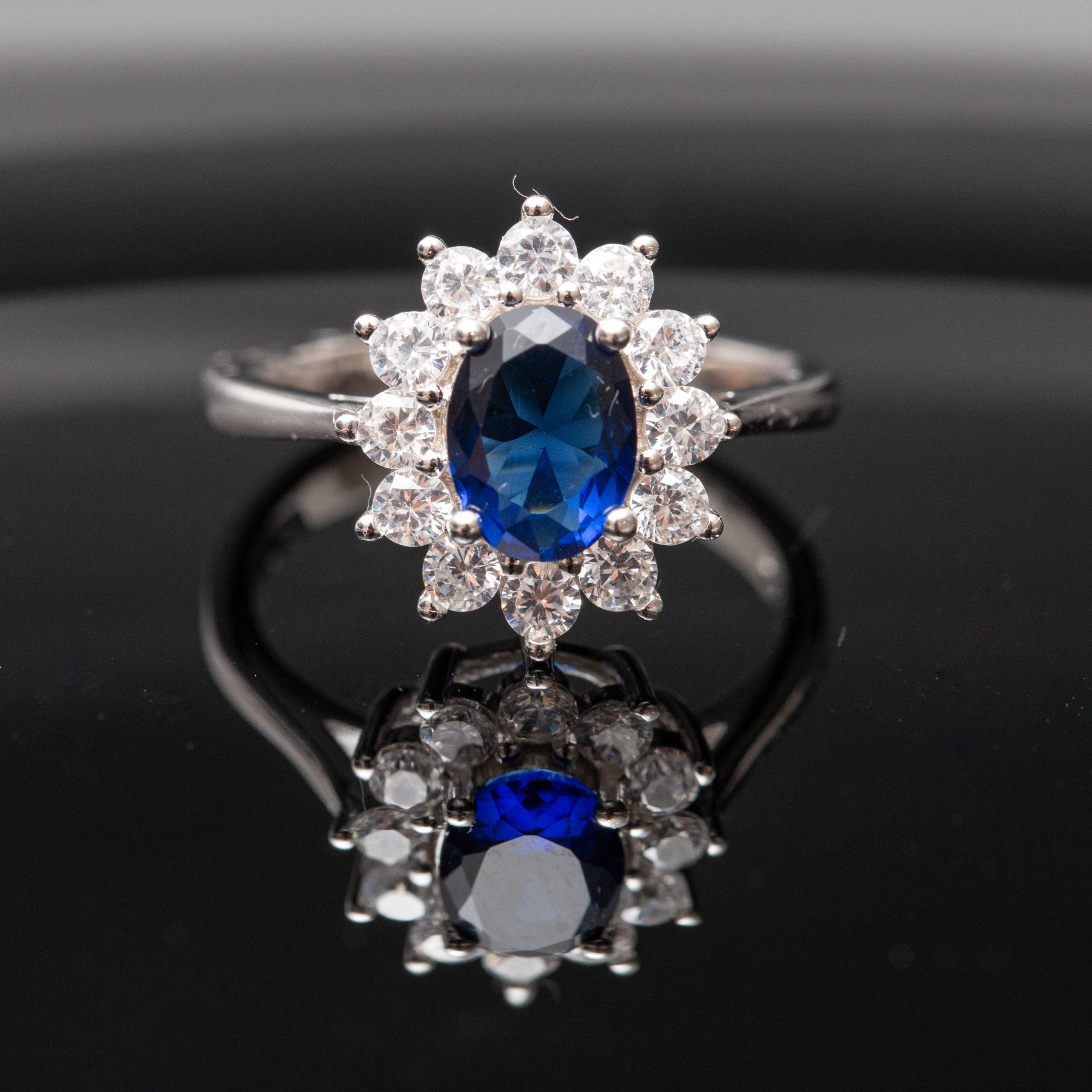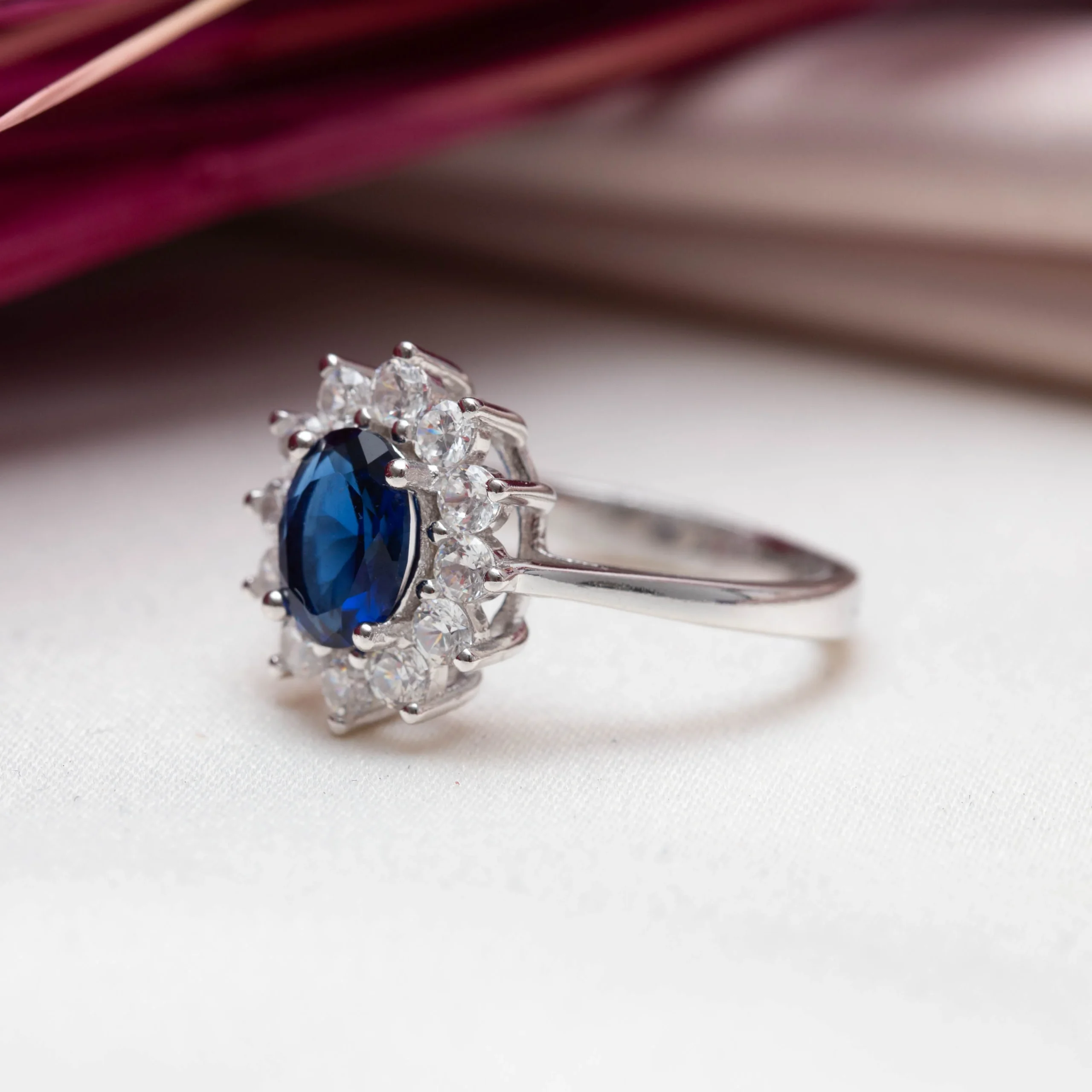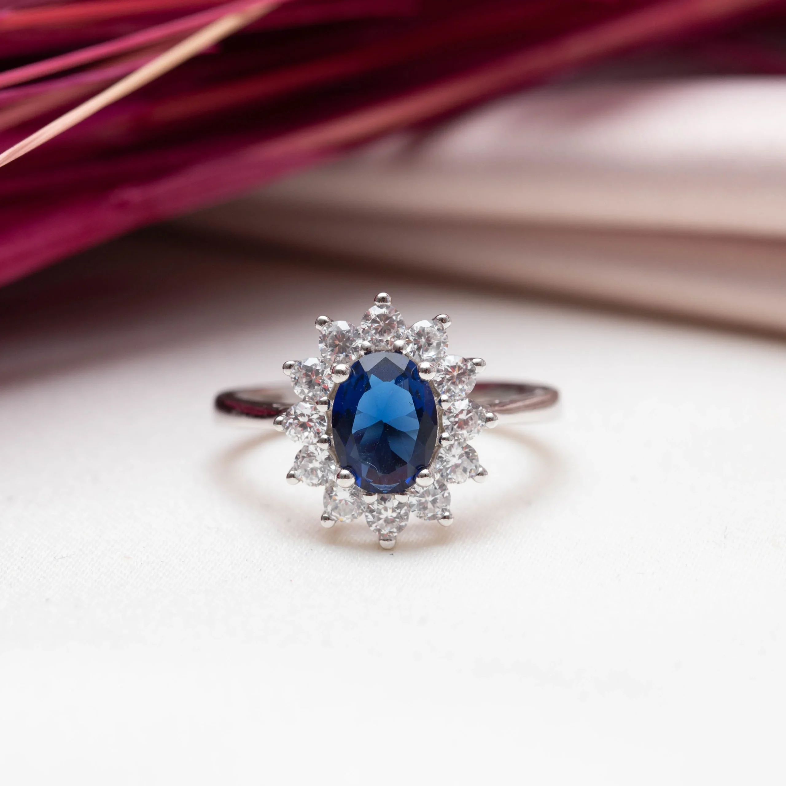 Bague argent Rhodié garanti avec une pierre Blue ovale