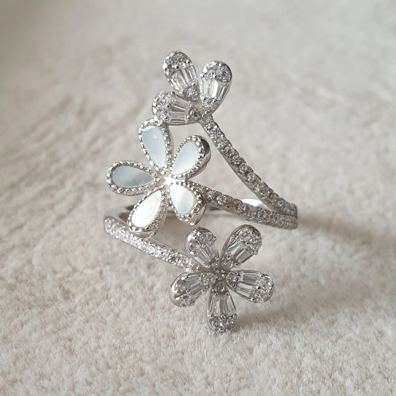 Bague Argent Rhodié garanti les fleurs 🌸 🌸 🌸