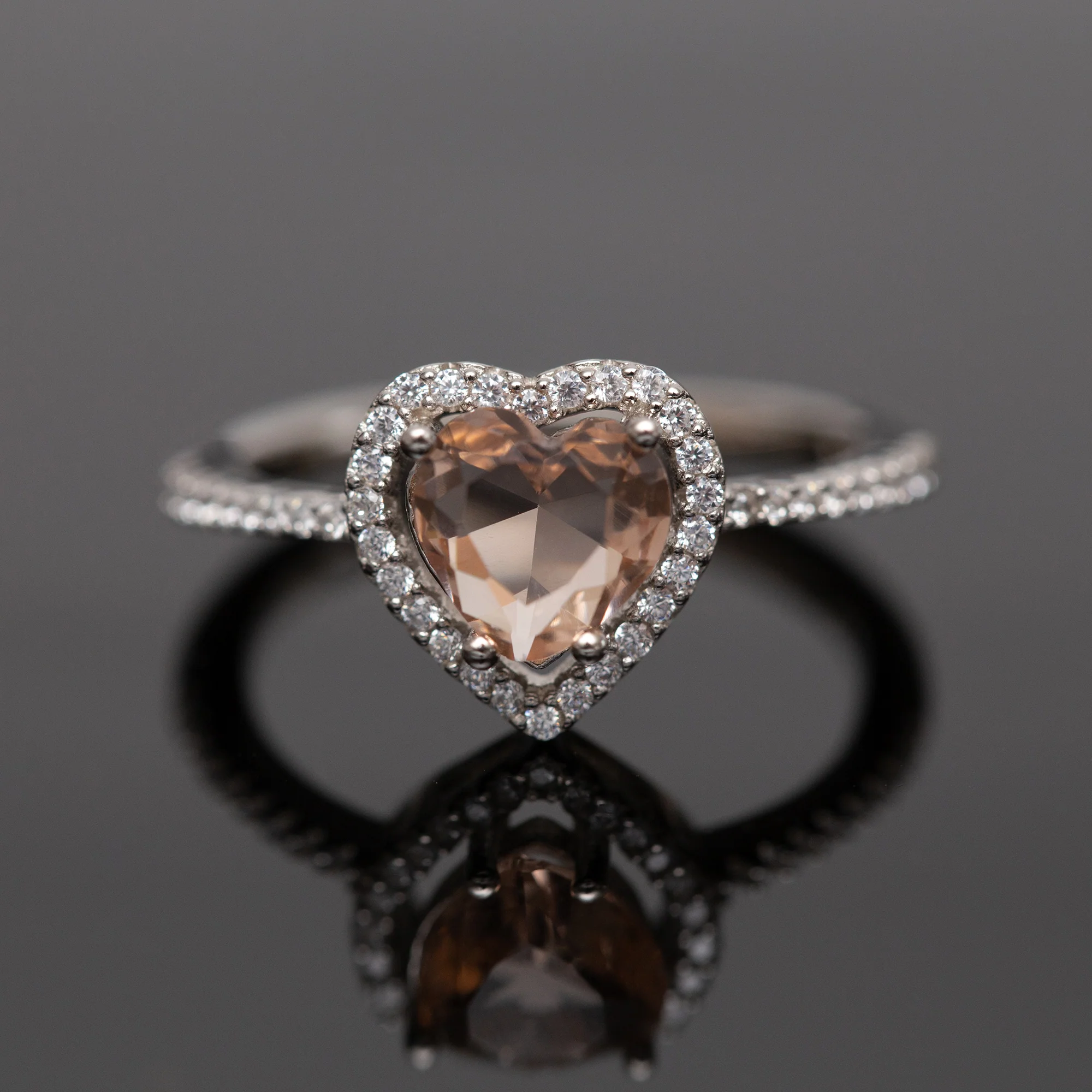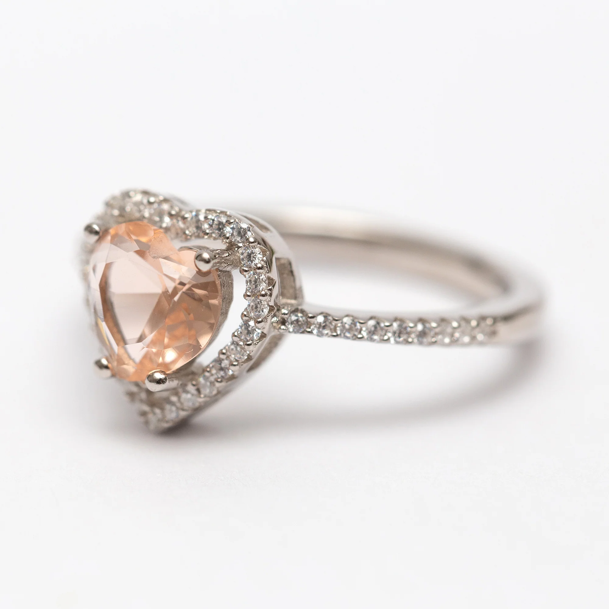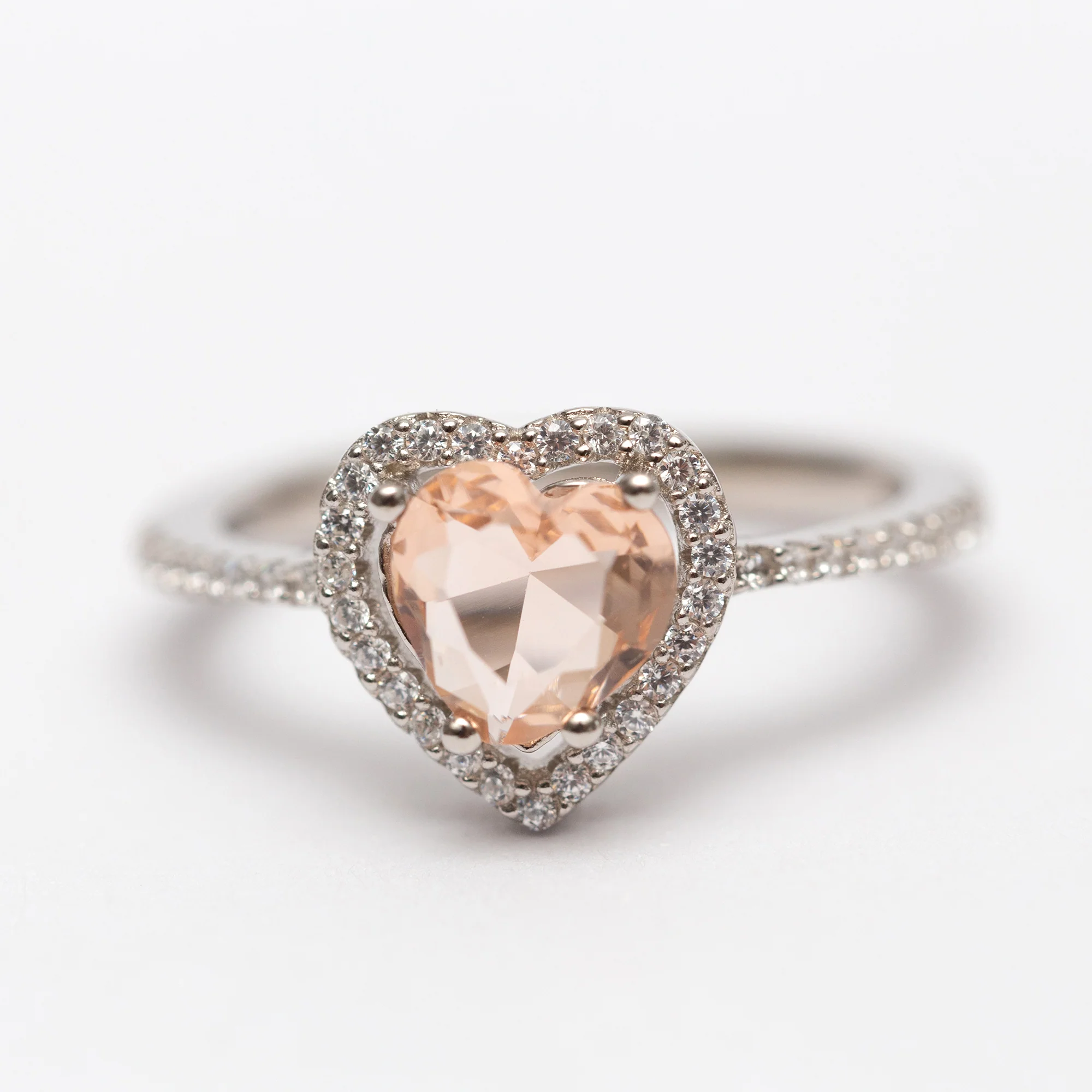Bague Argent Rhodié Pandora. Motif Cœur miel