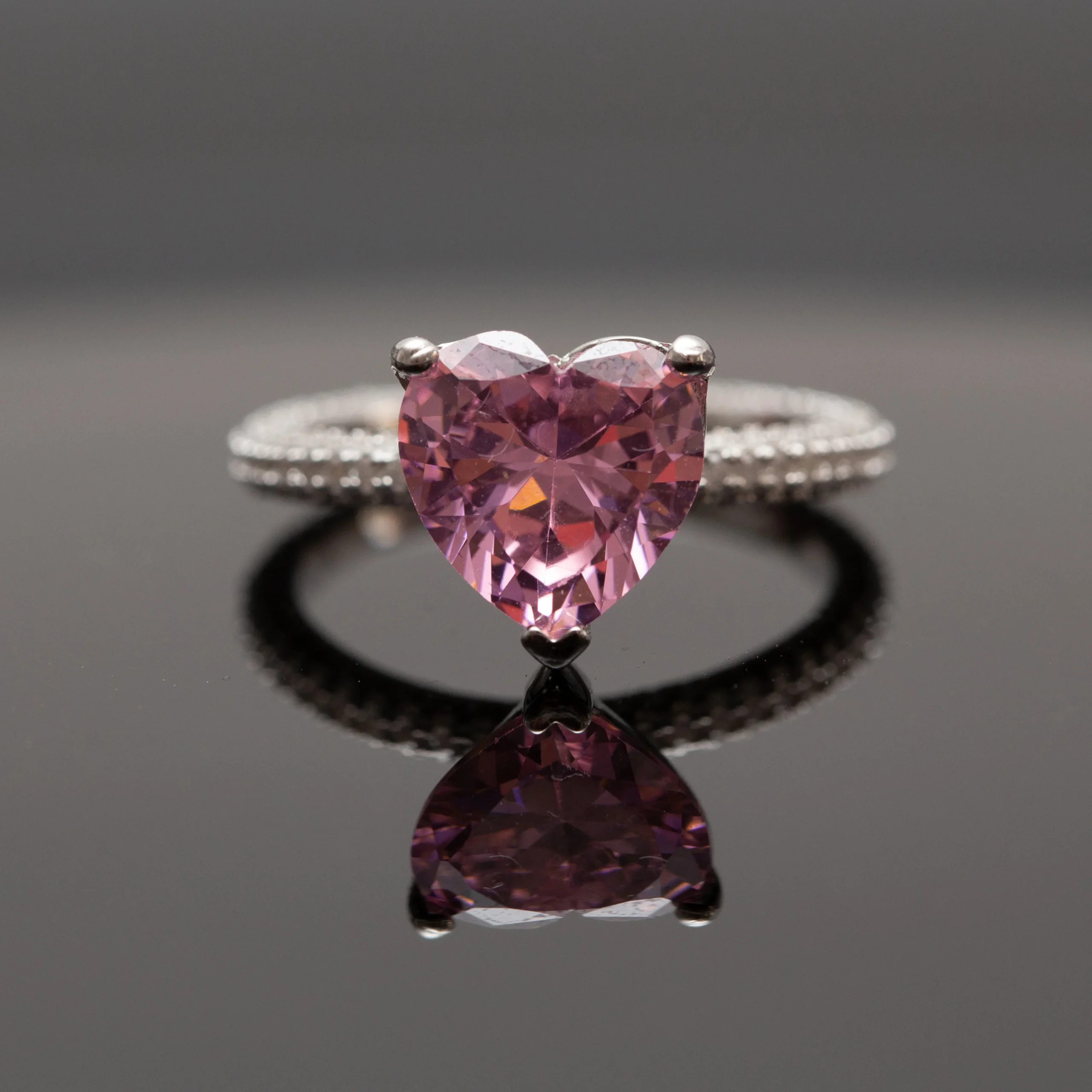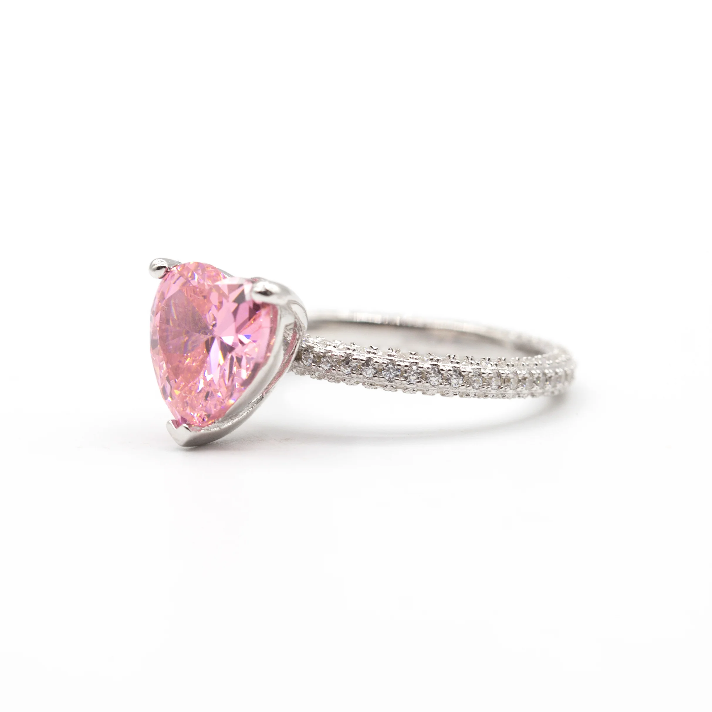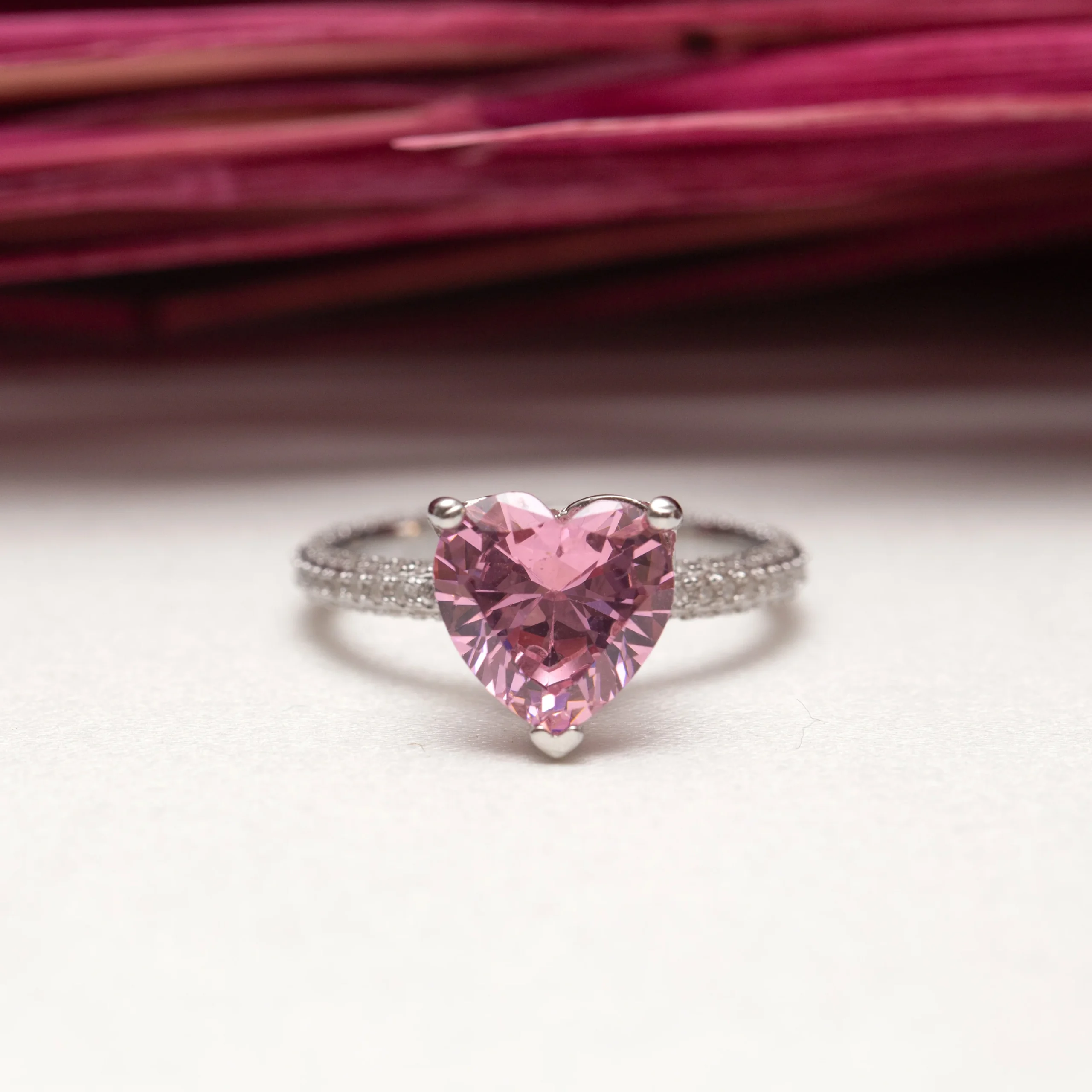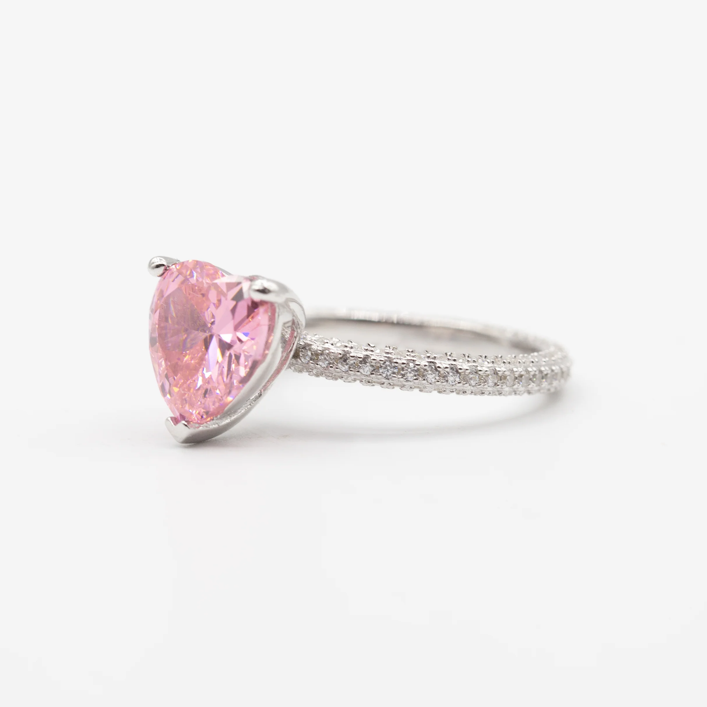 Bague argent rhodié tendance cœur rose (Pink Heart)