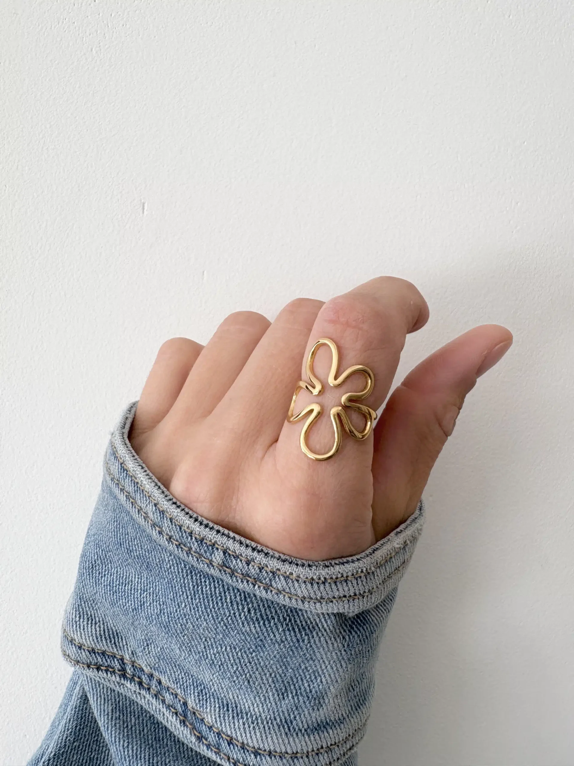 - Bague large composée d’acier inoxydable doré et représentant une fleur marguerite