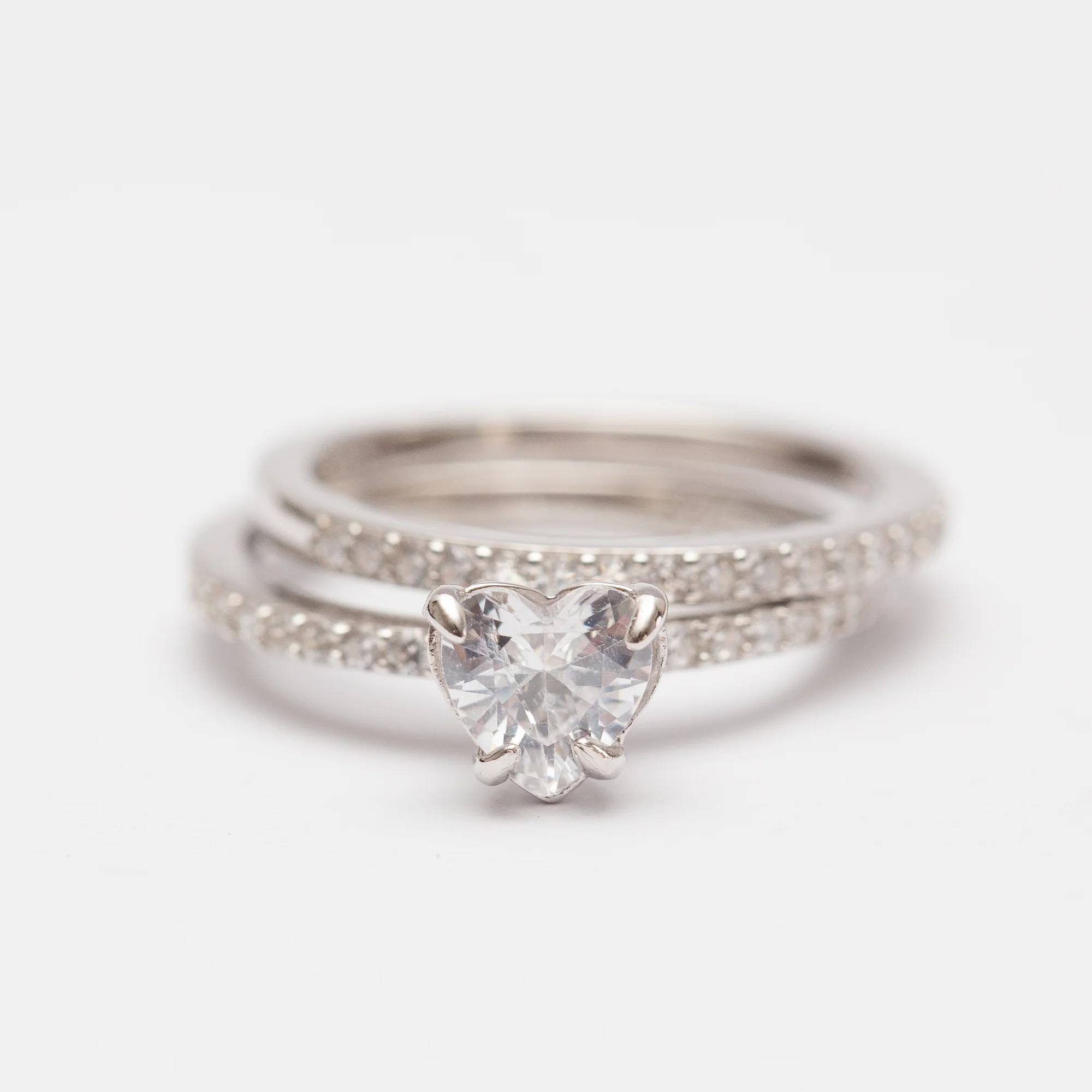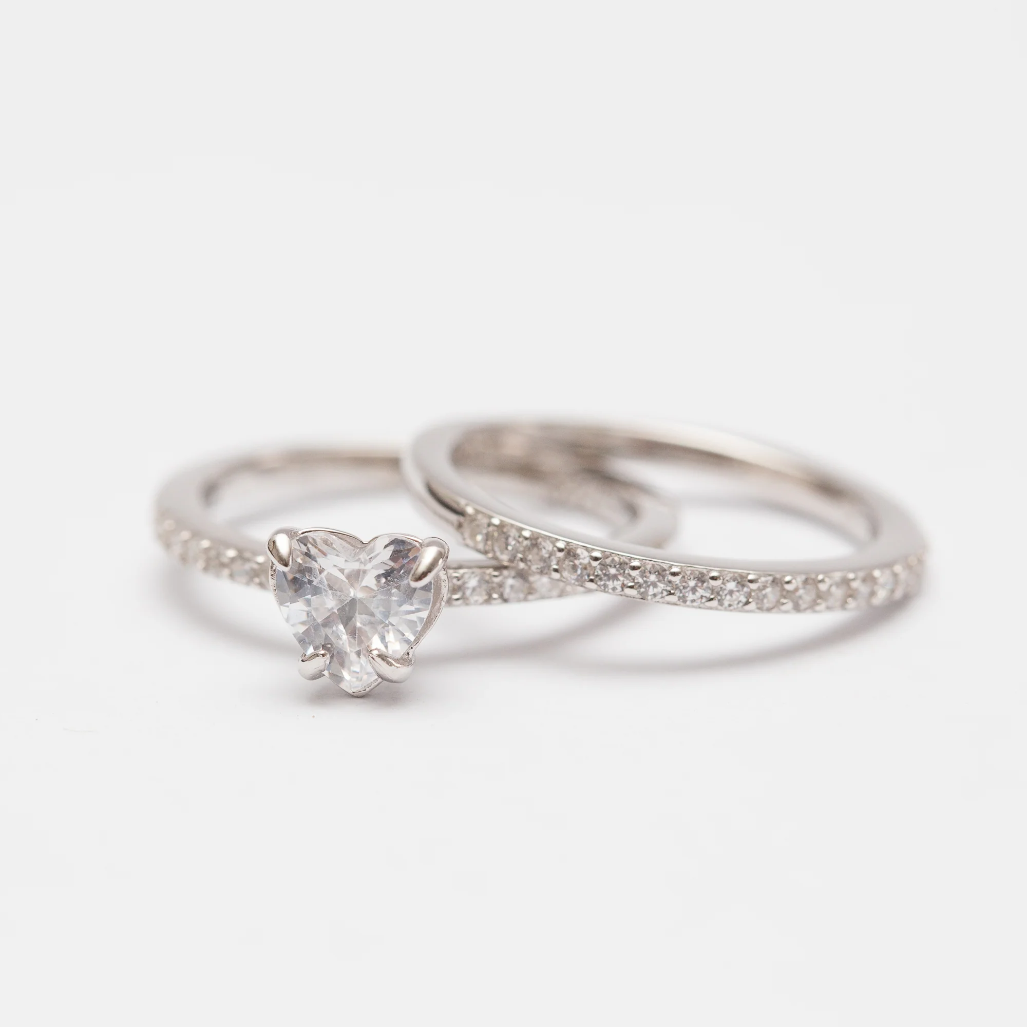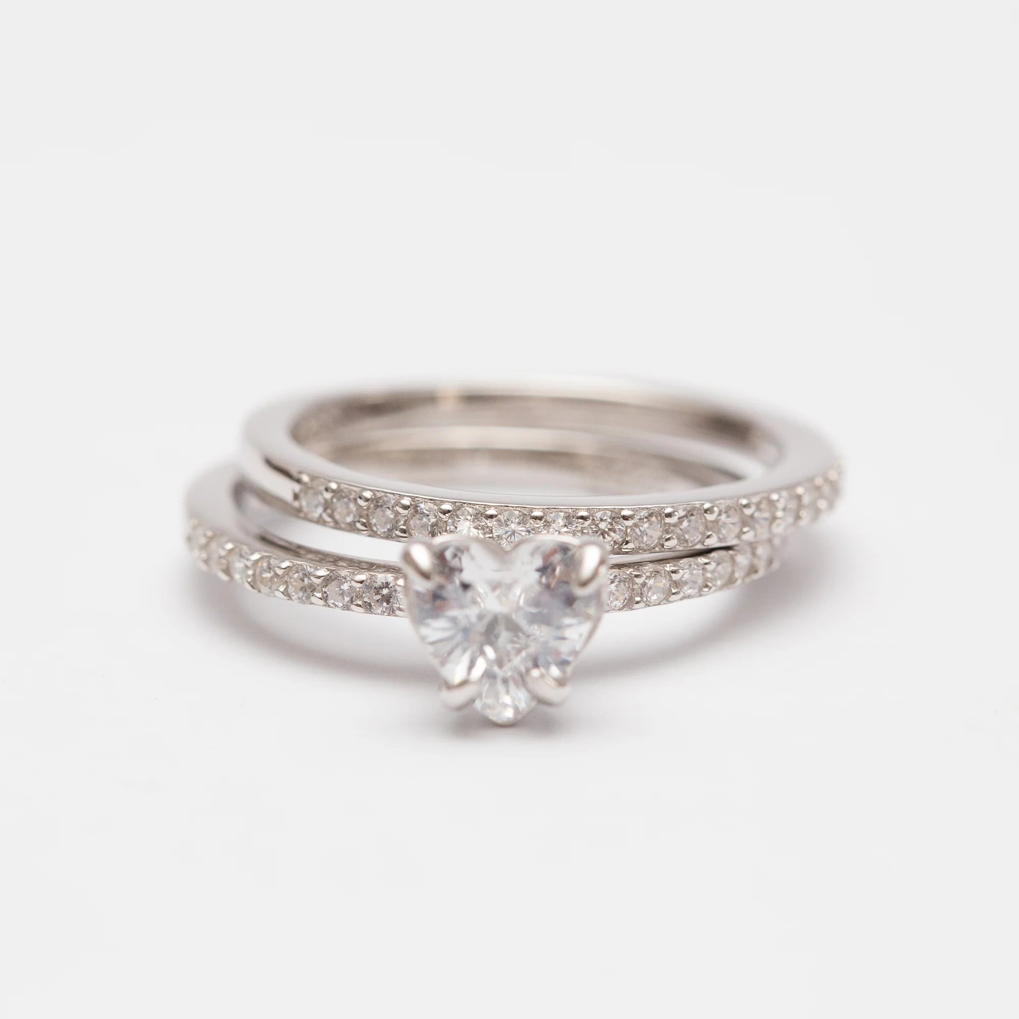Bague doublée Argent Rhodié tendance – Cœur blanc