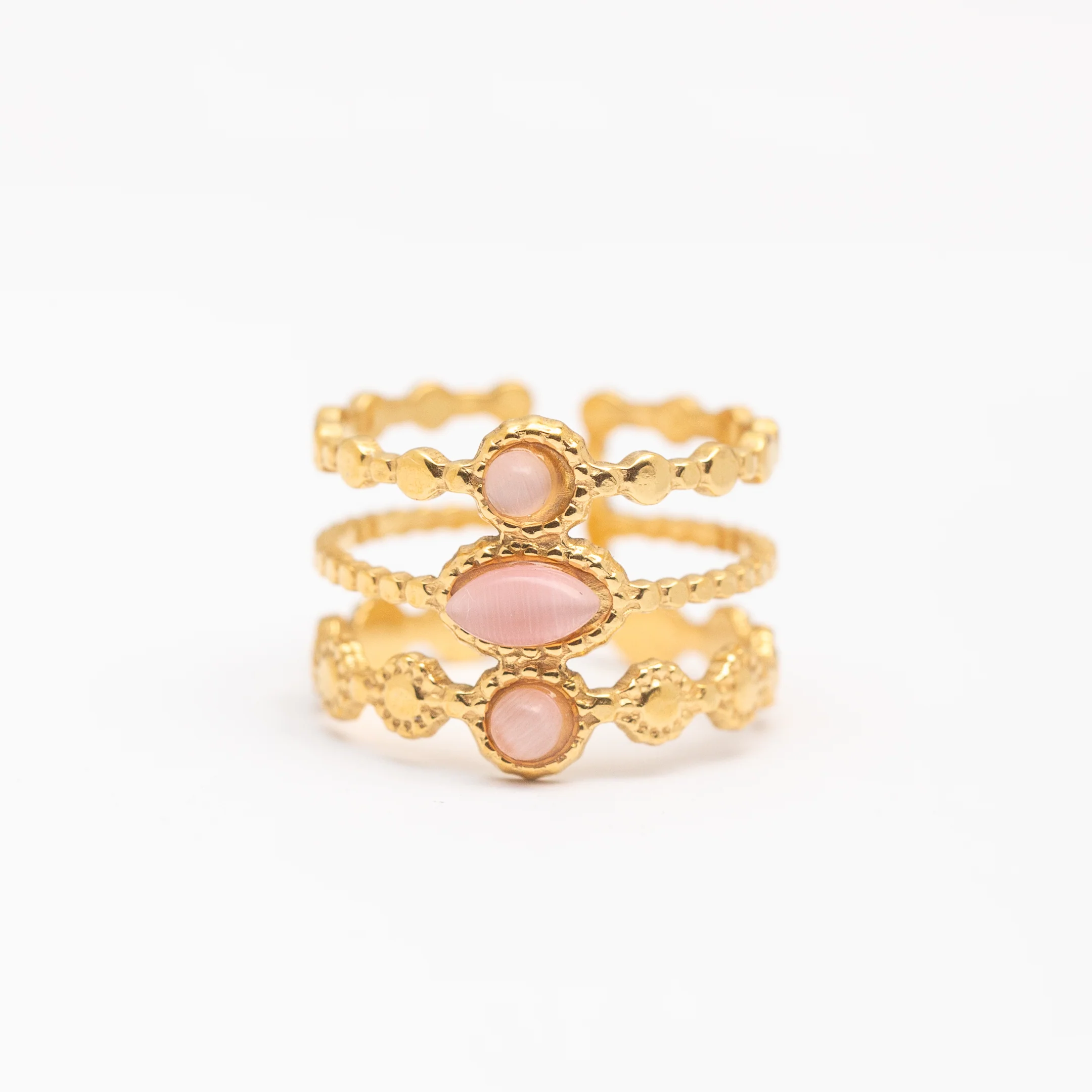 Bague élégante en acier avec pierre Quartz Rose