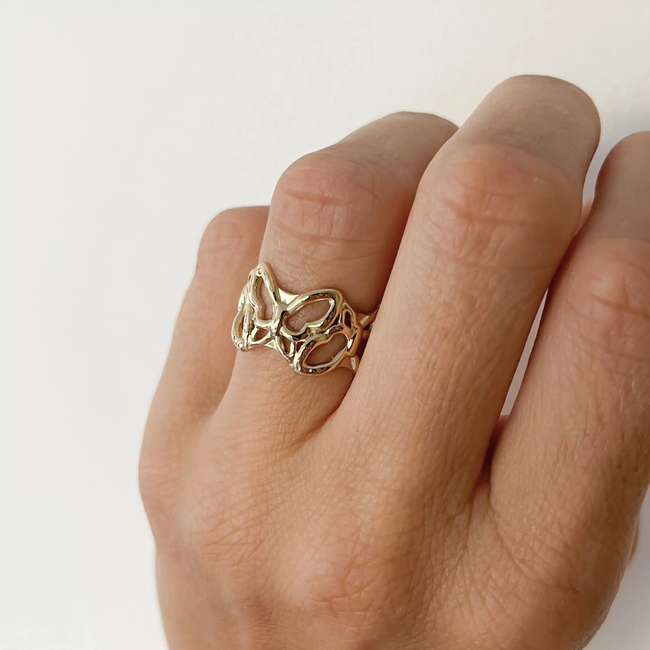 - Bague assez large, épaisse composée d’une farandole de petits papillons trop jolis