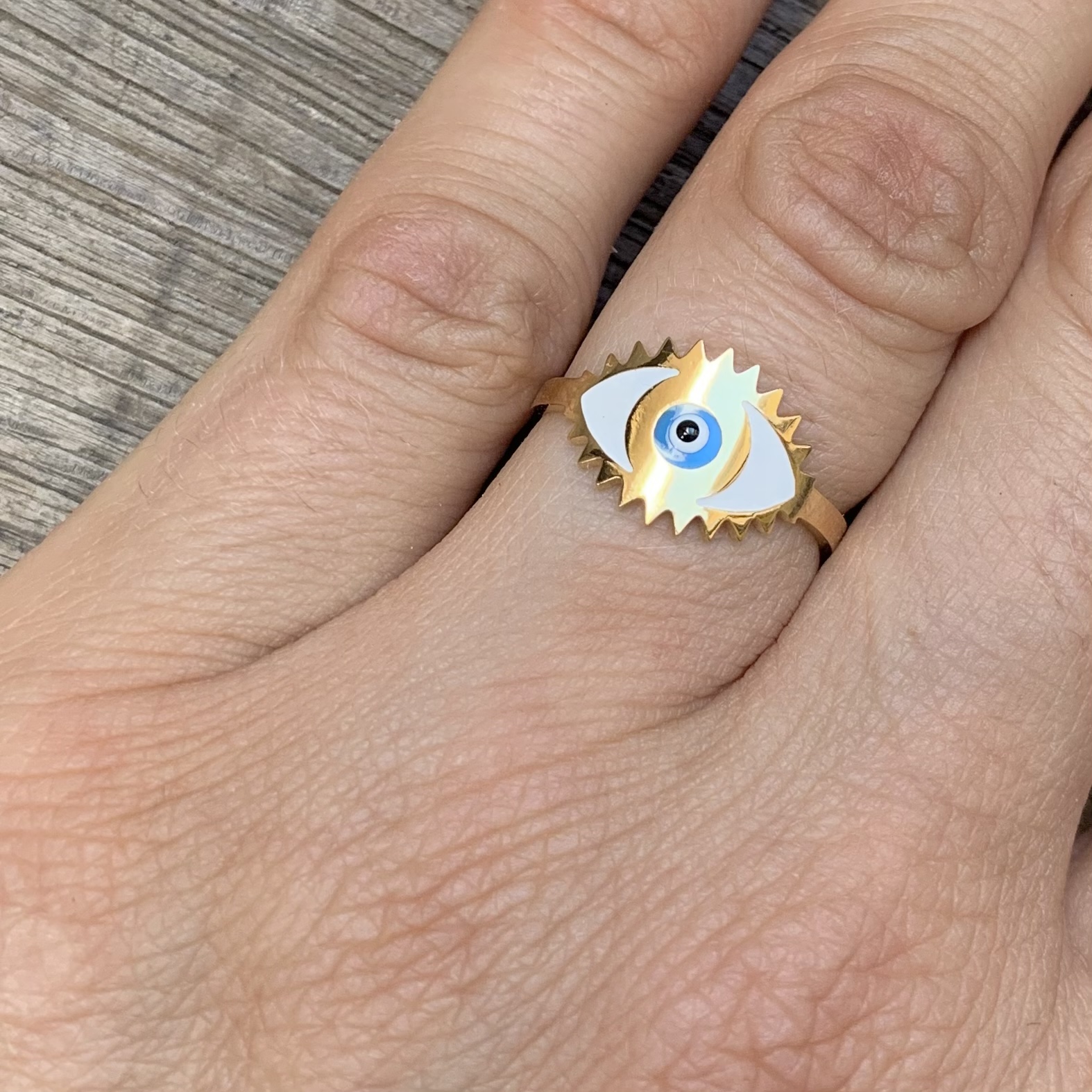 On est fan de ce bijou colposé d’un anneau très din et représentant un oeil pour un look estival et tendance.