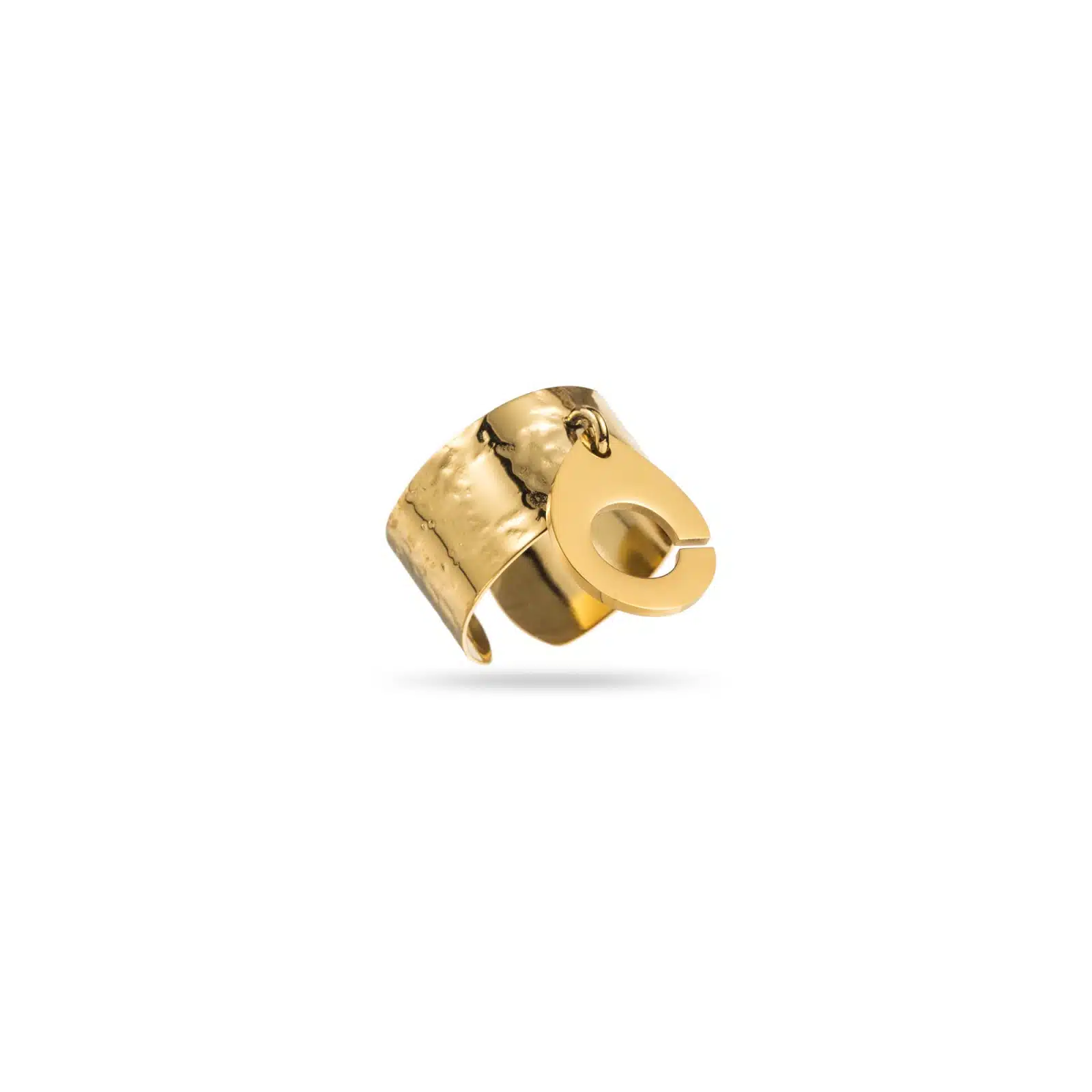 Bague en acier inoxydable de couleur dorée avec pampille en forme de menotte