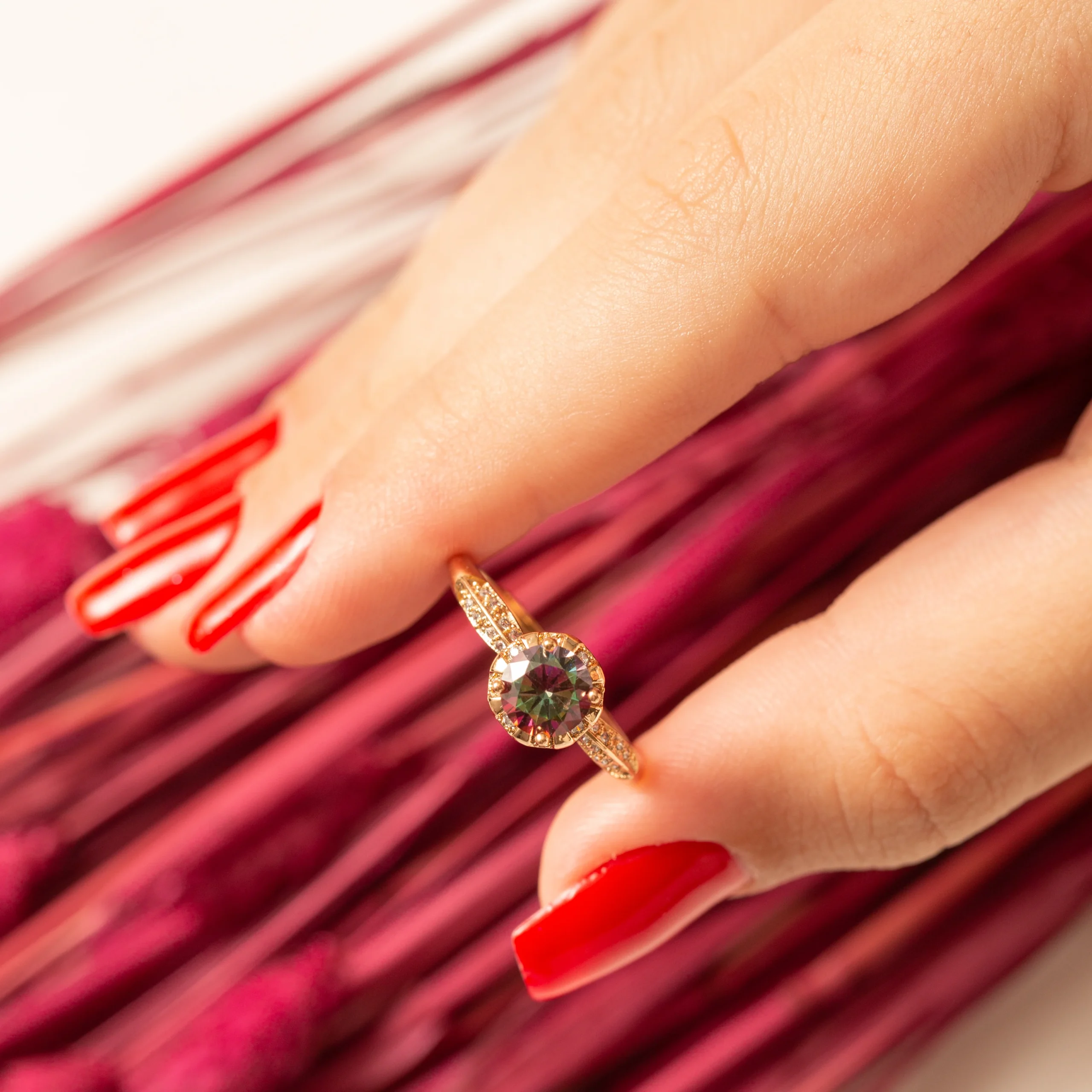Bague plaqué or Xuping tendance avec une pierre rouge – violet