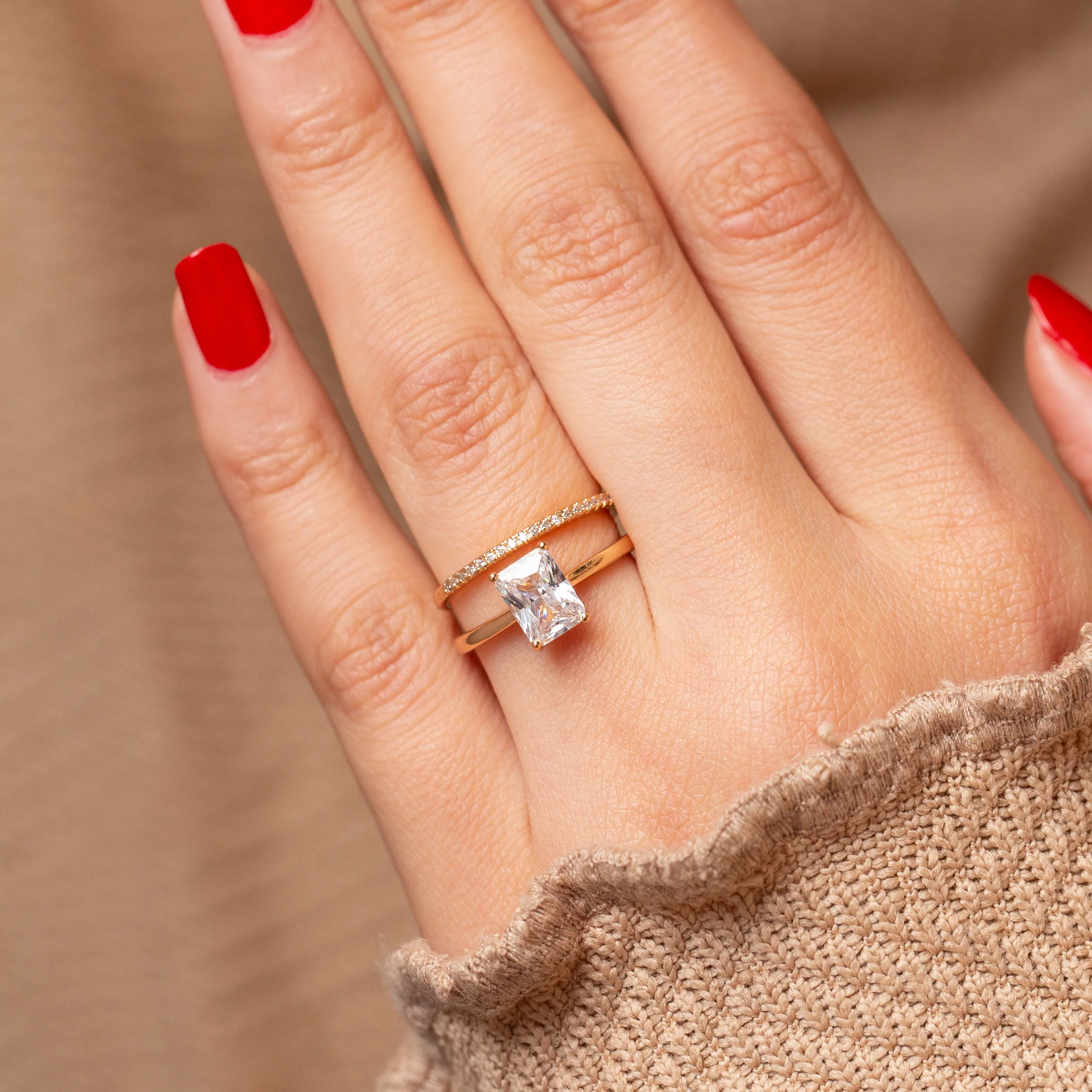 Bague Promesse 18K en Plaqué Or Pierres Zirconium Fines