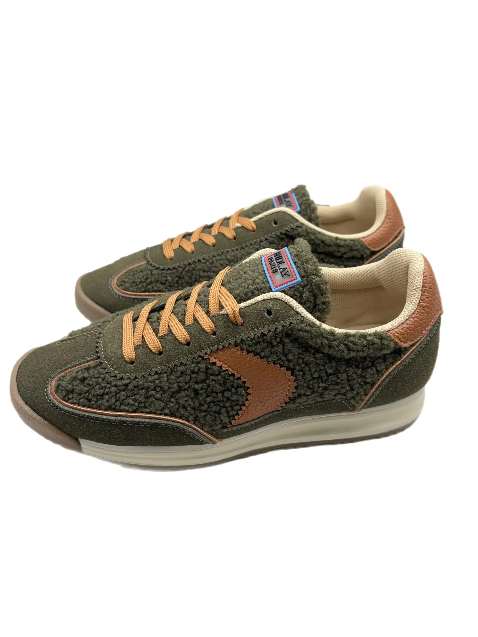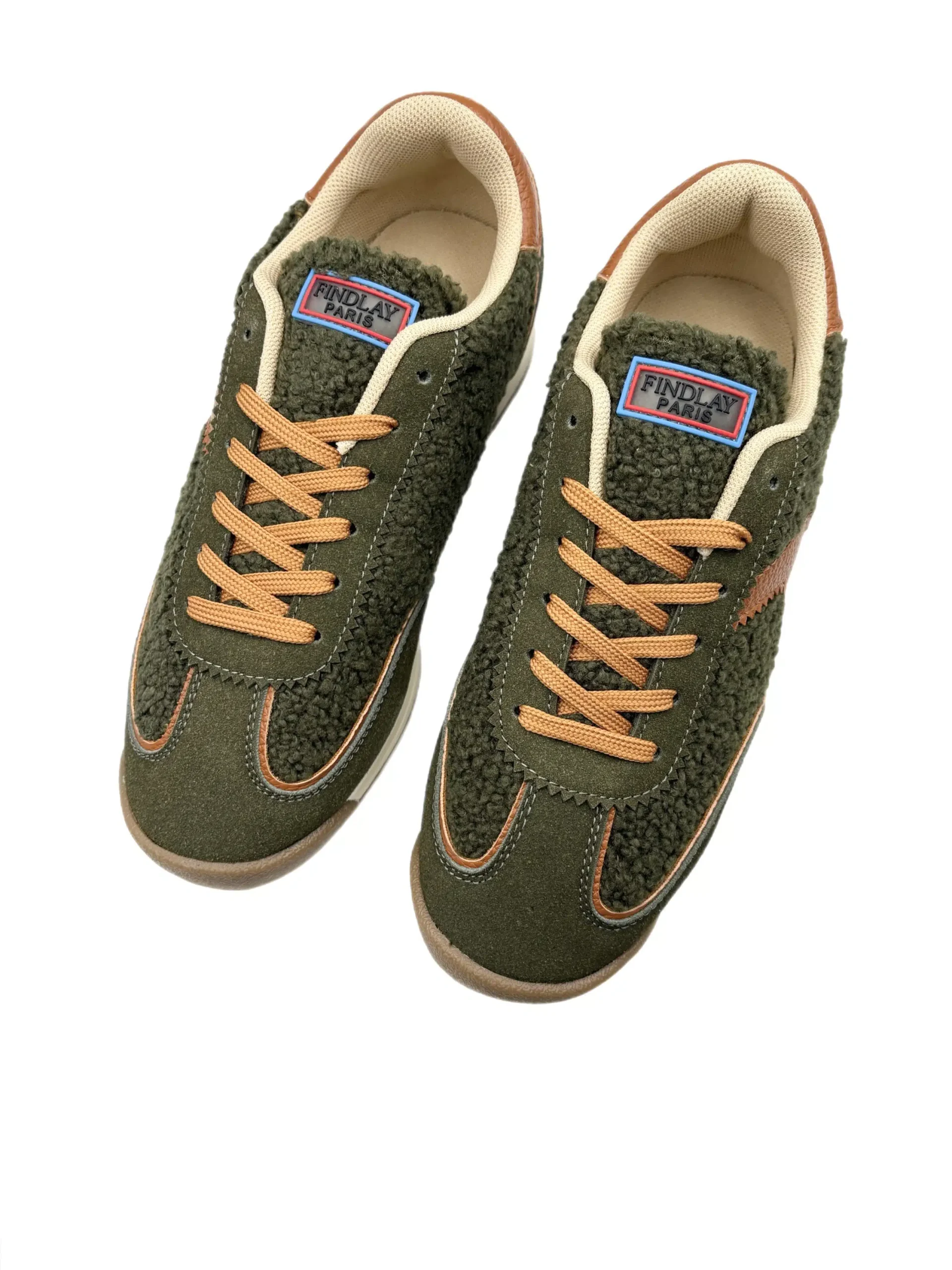 Baskets femme moumoute kaki et camel