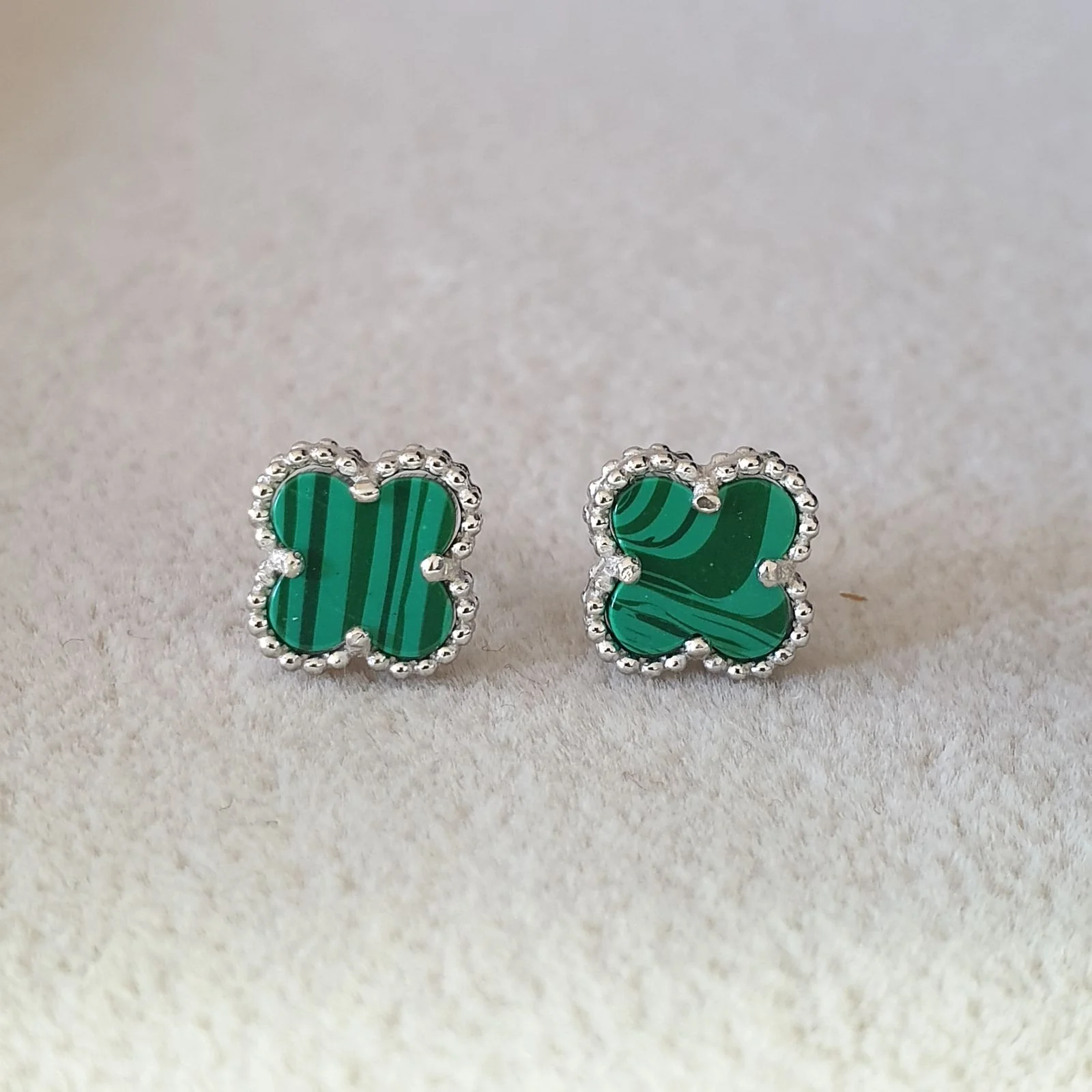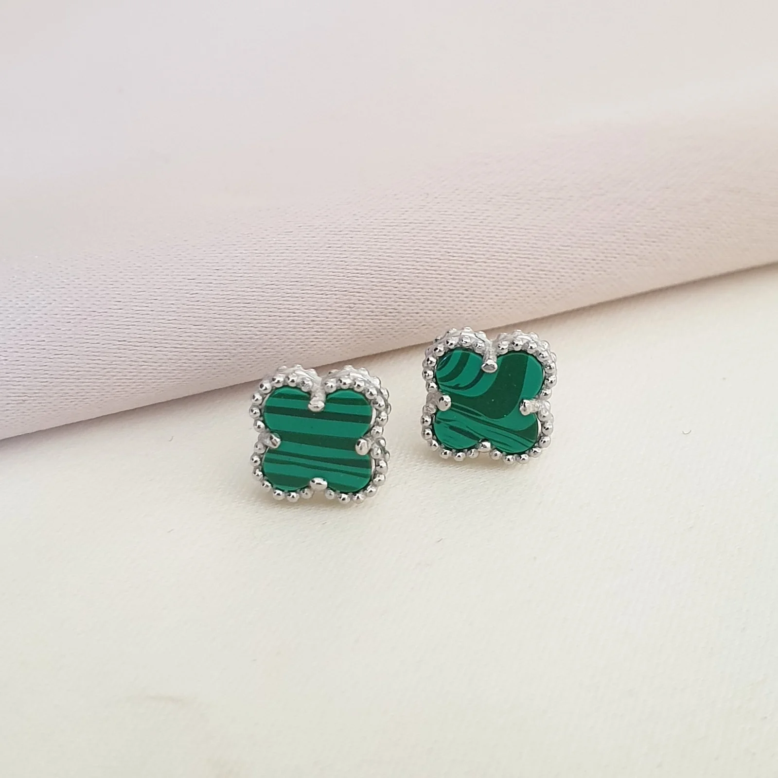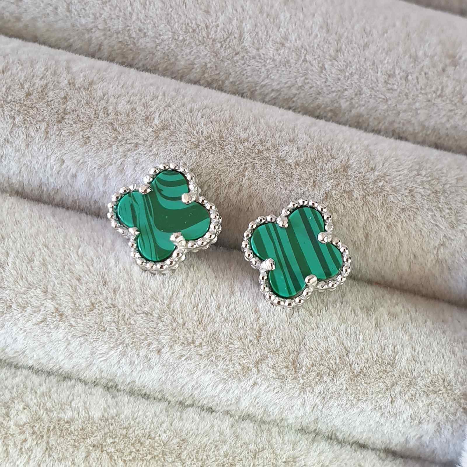 Boucle d’oreille argent Rhodié garanti trèfle vert 3