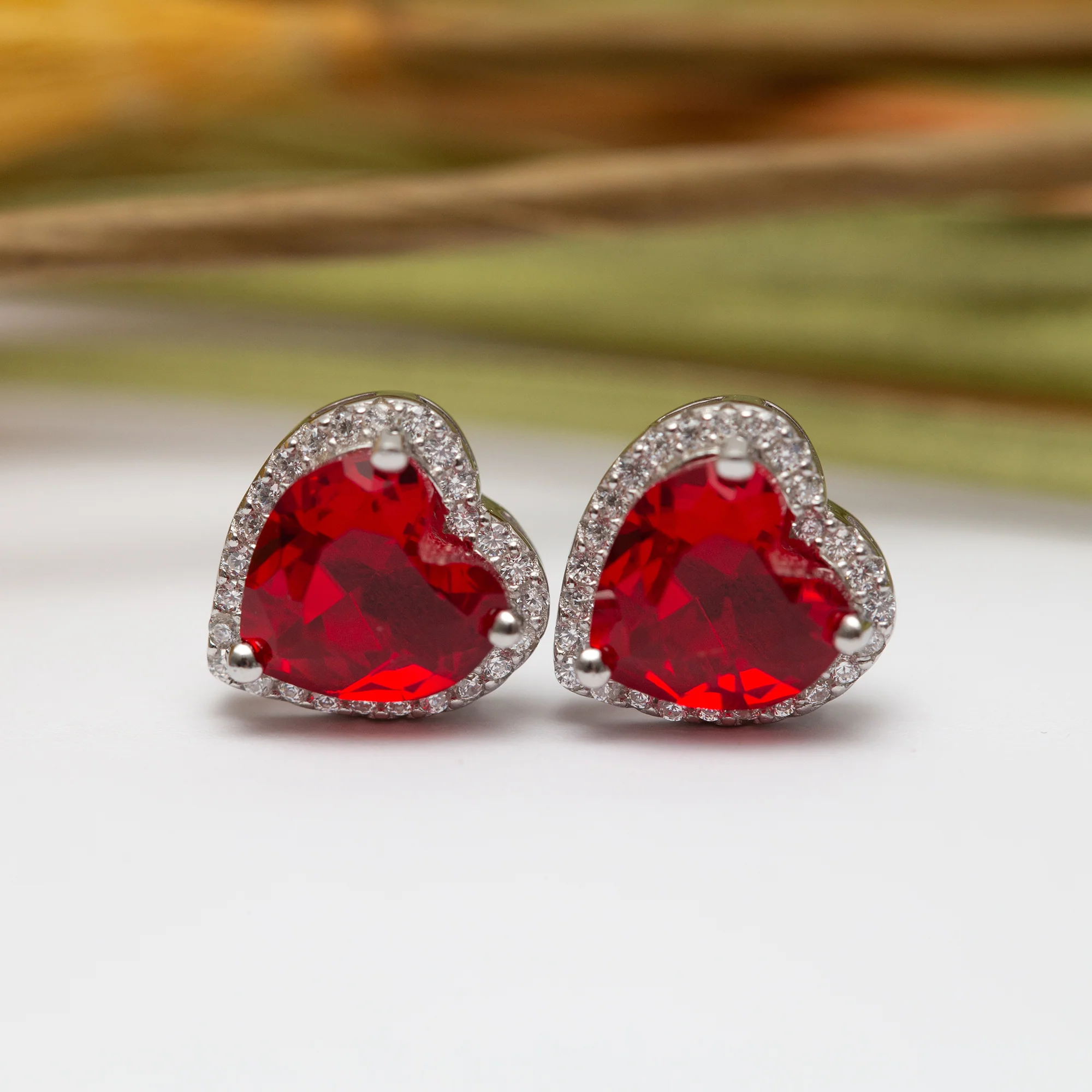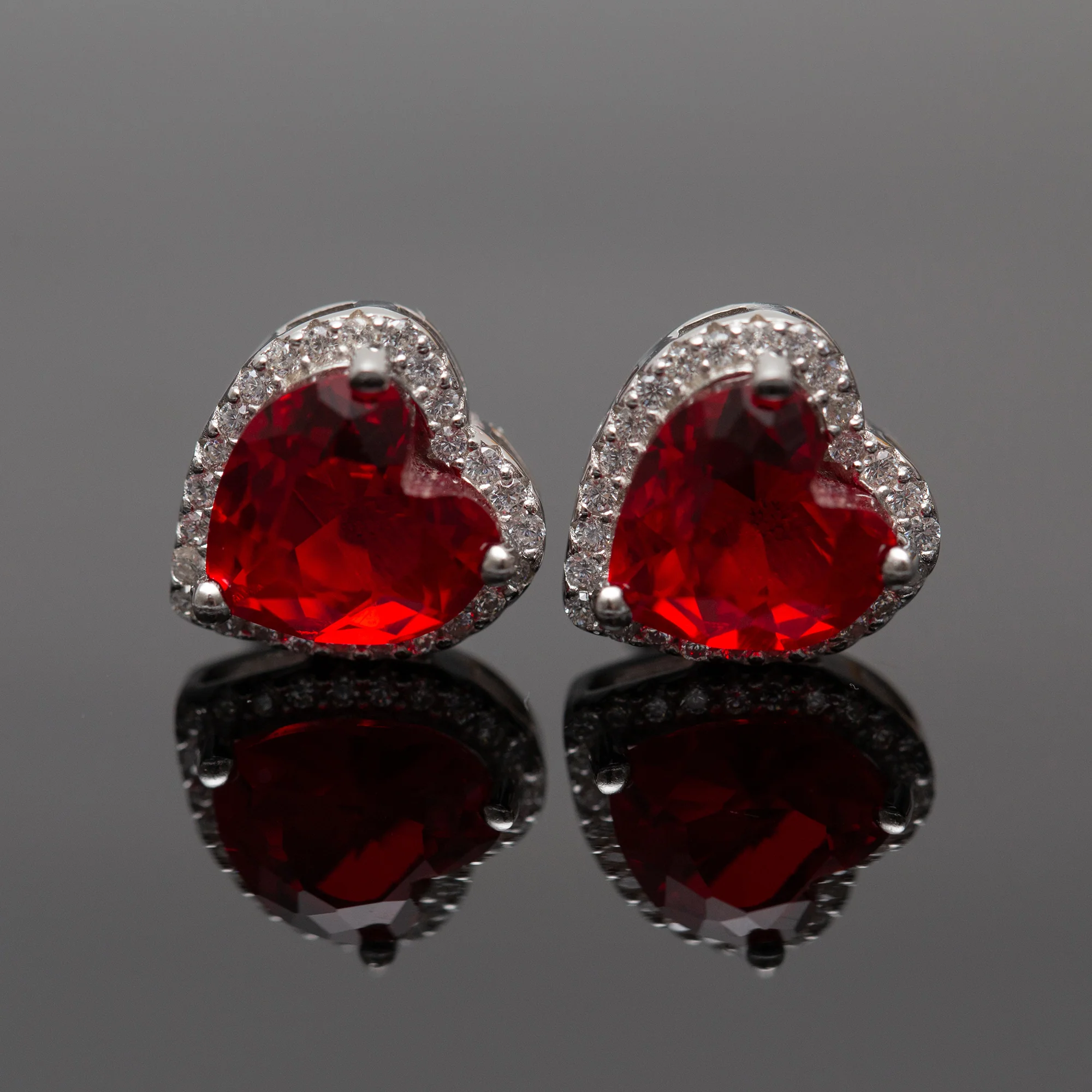 Boucle d’oreilles Argent rhodié Pandora tendance. Motif cœur rouge