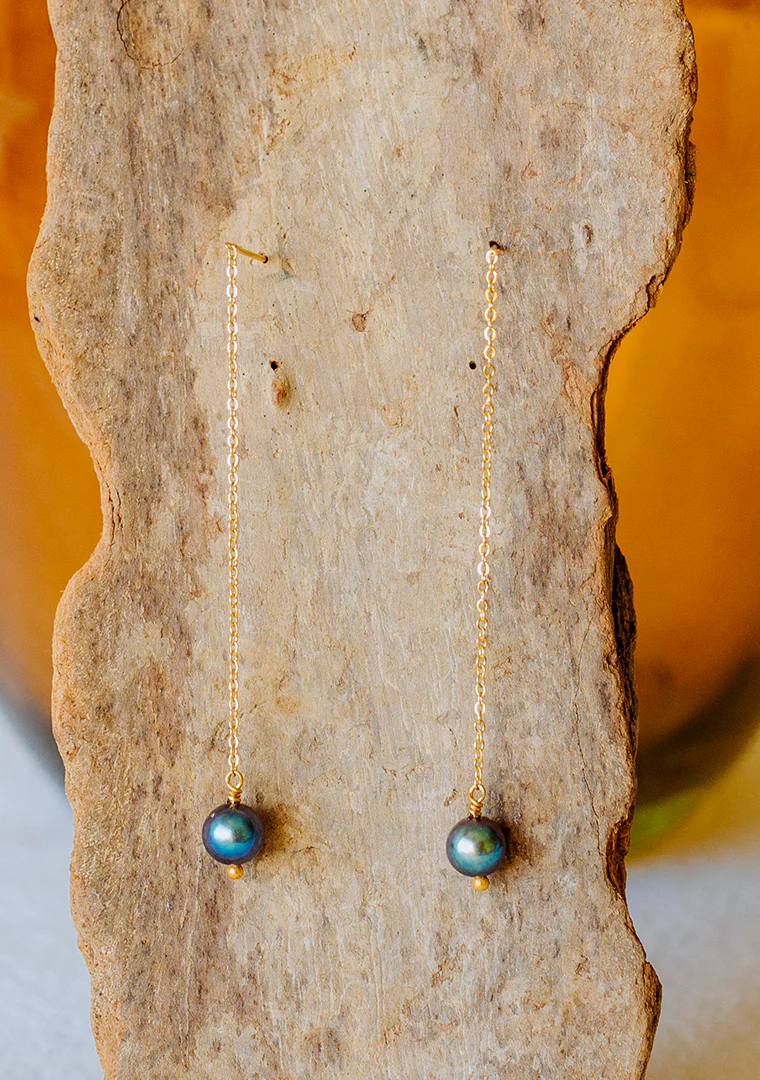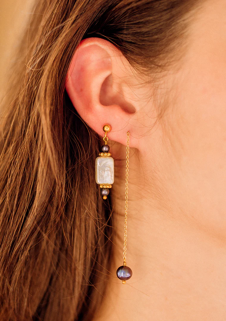 Les boucles d’oreilles Alba sont fabriquées à la main dans mon atelier, Elles sont composées d’une fine chaine ornée de Perles d’eau douce grises,