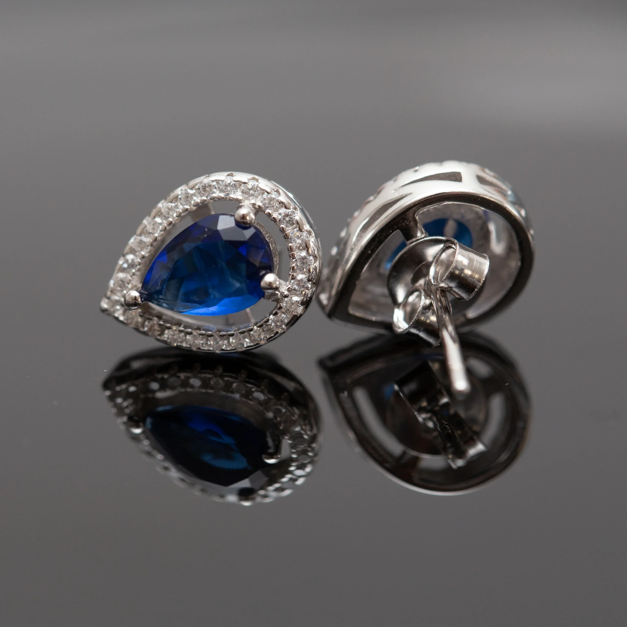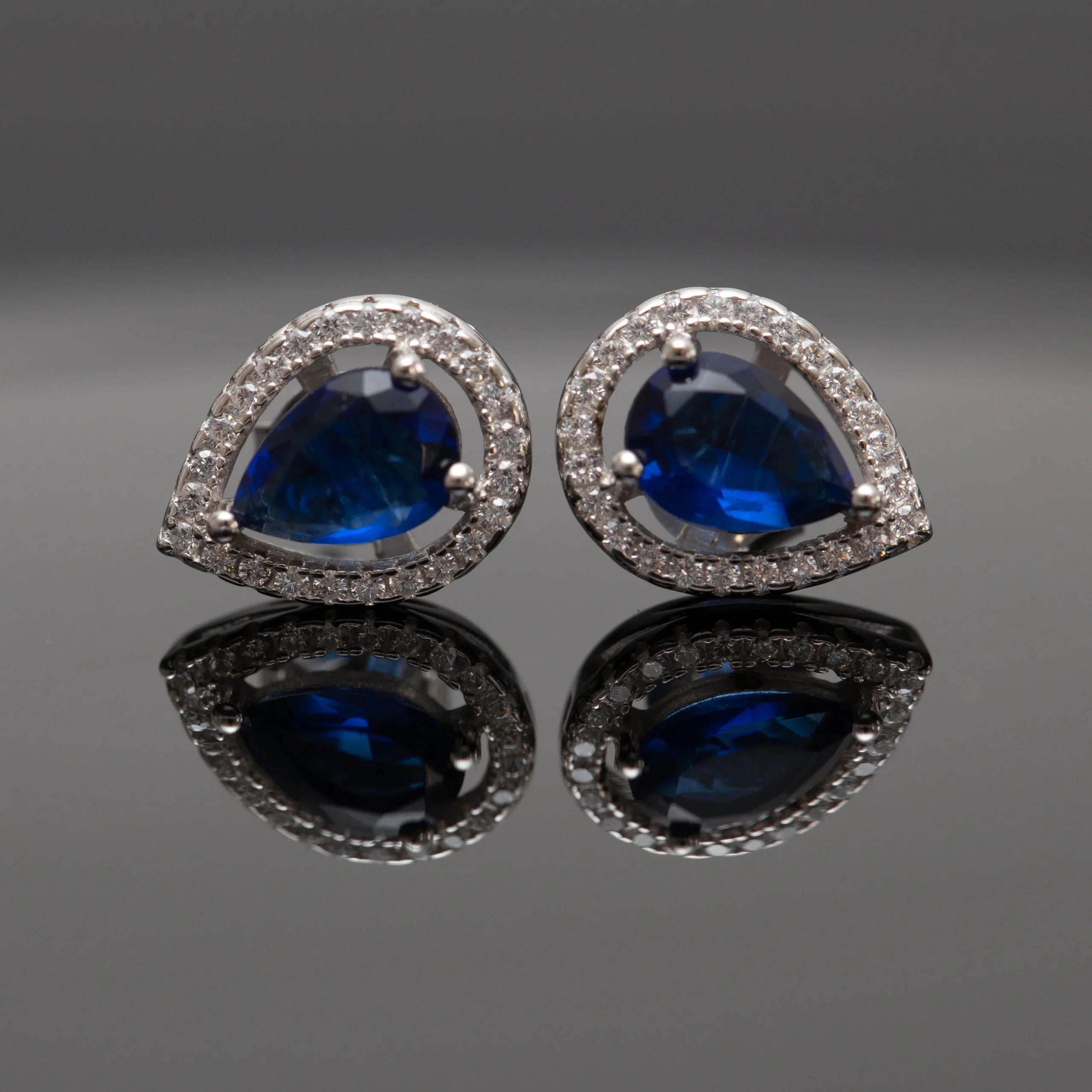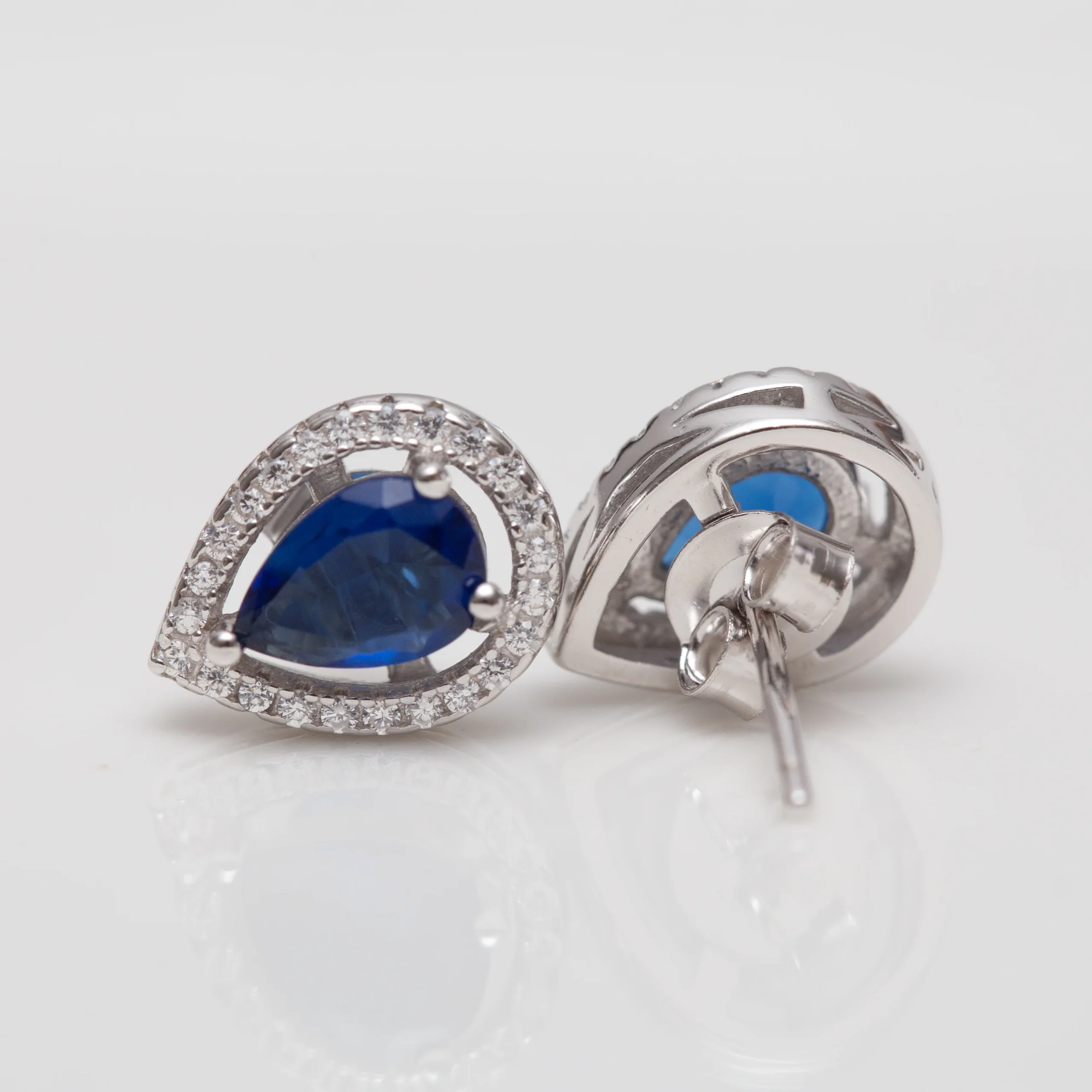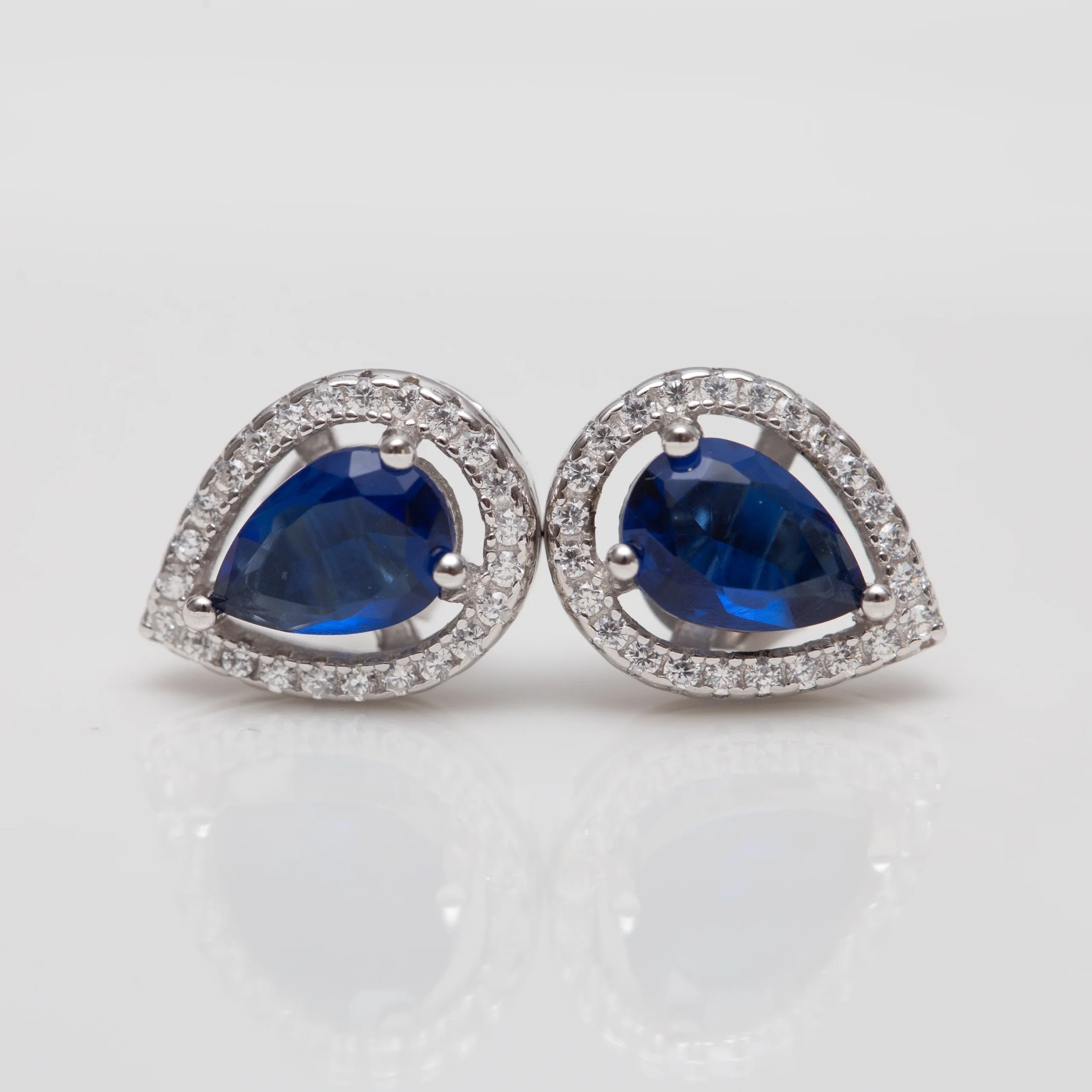 Boucles argent rhodié tendance avec un motif bleu