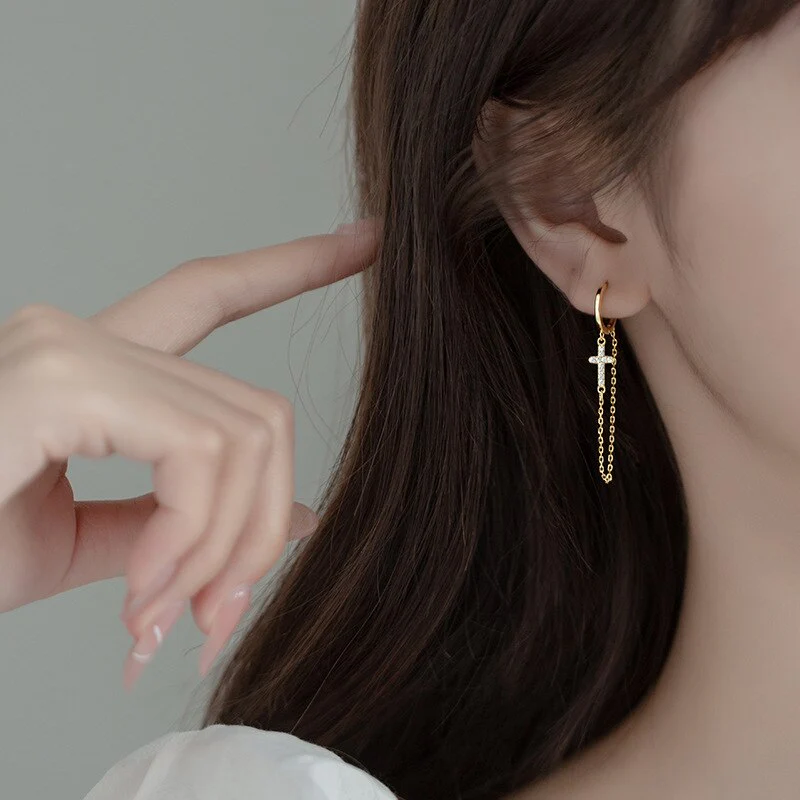 Exprimez votre amour et votre respect envers Dieu et ses enfants avec ces boucles d’oreilles. Elles arborent une croix délicate reliée par une chaînette aux créoles, créant ainsi un look à la fois tendance, élégant et authentique. Porter des boucles d’oreilles en croix, c’est témoigner fièrement de sa foi à tous.