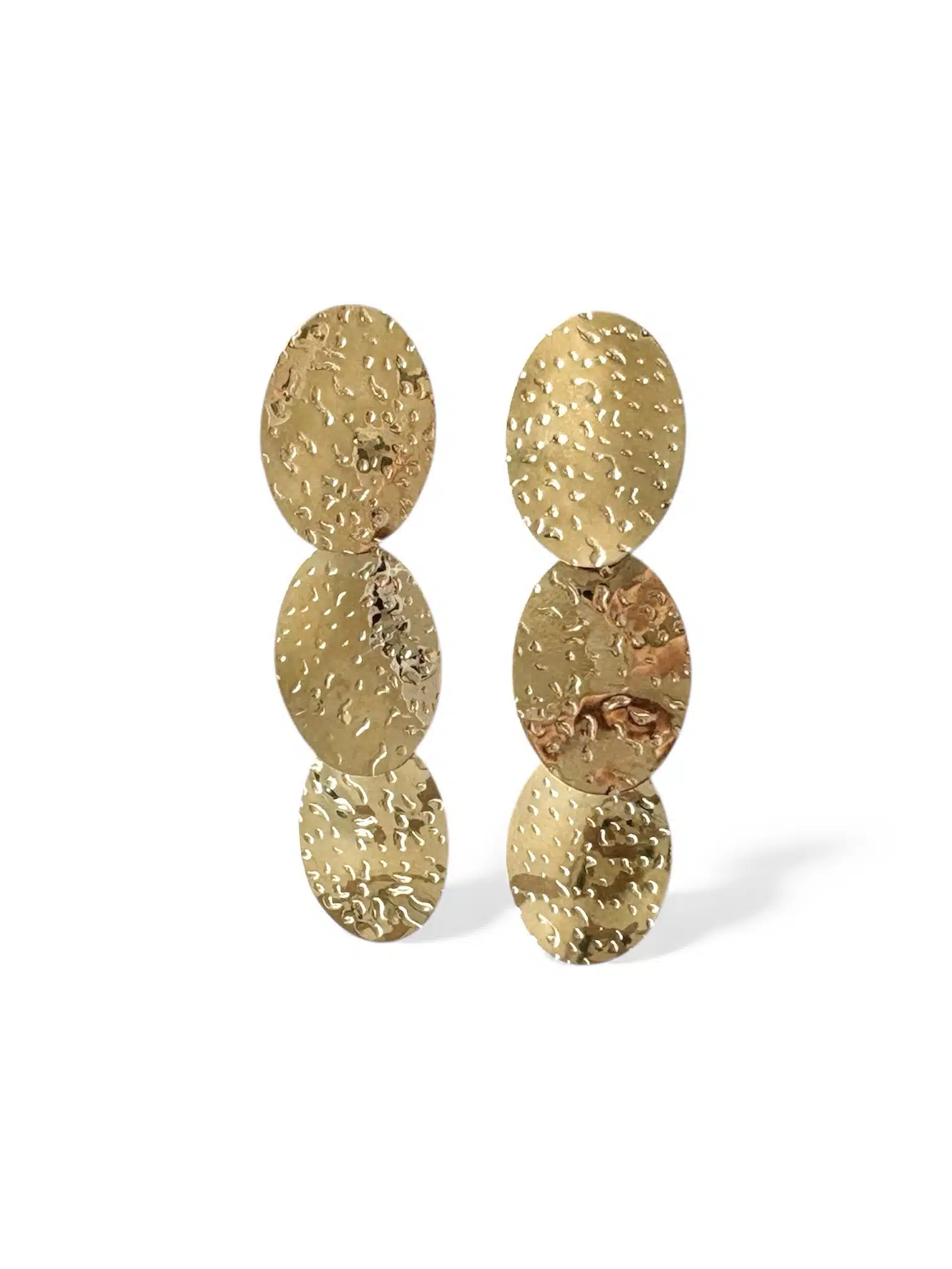 Boucles d’oreilles pendantes en acier inoxydable composées de trois pampilles martelées– Bijou en acier inoxydable