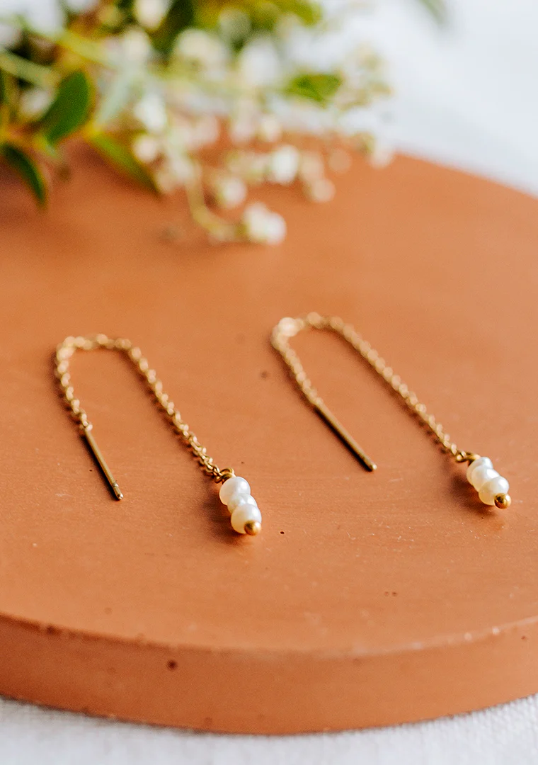 Les boucles Lya sont fabriquées à la main dans mon atelier, Elles sont composées d’une fine chaine ornée de Perles d’eau douce qui vous permet de les porter de différentes façons,