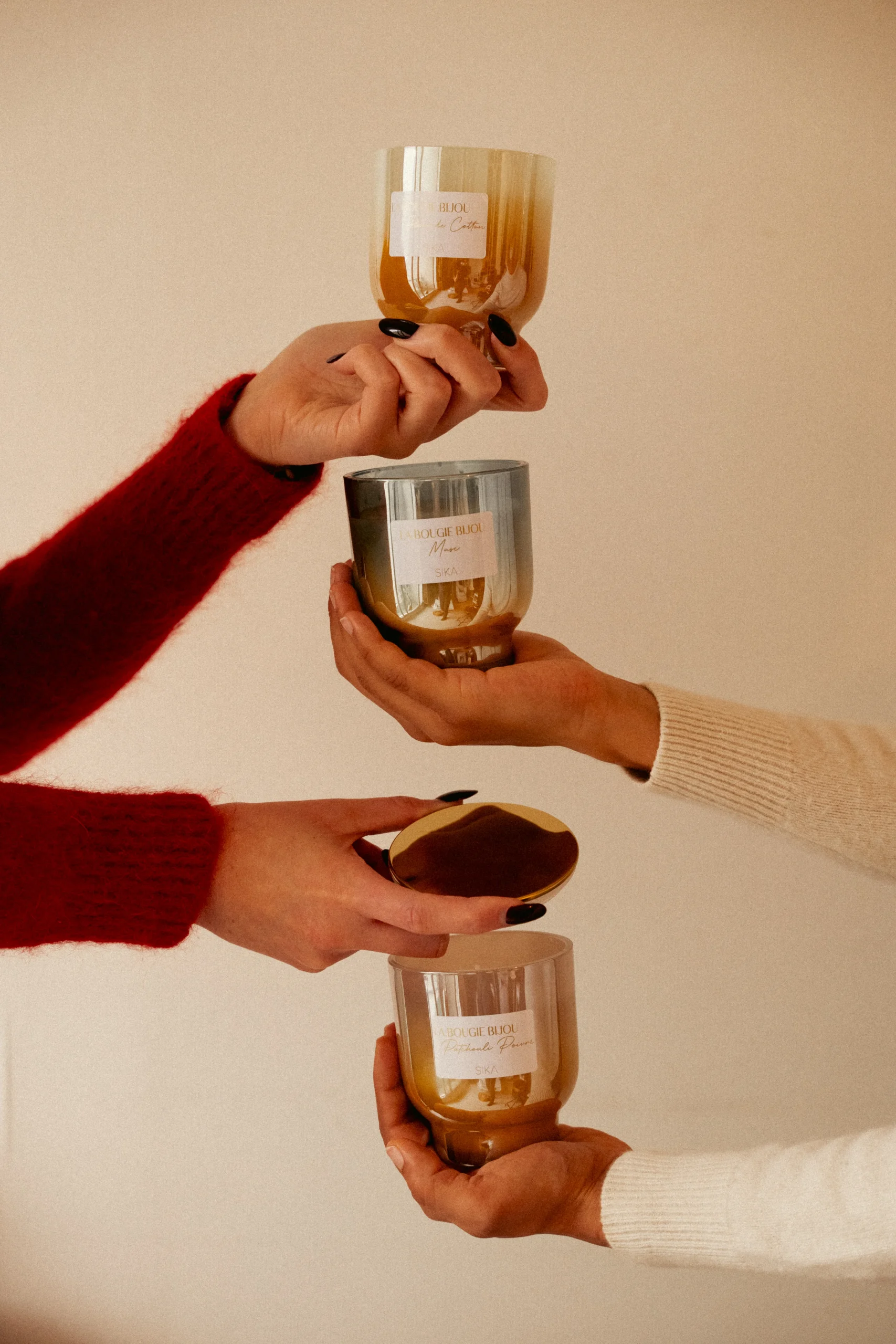 Au coeur de la cire se cache un bracelet surprise, soigneusement protégé dans un pochon étanche, lui-même doublé d’aluminium pour garantir une protection totale pendant la combustion.