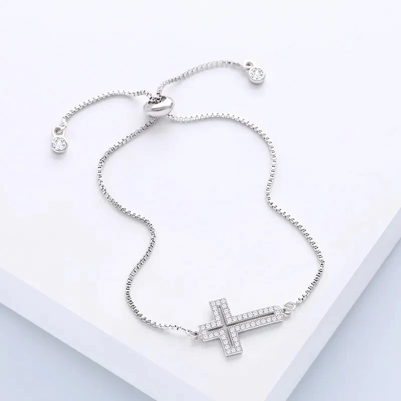 Découvrez la beauté raffinée de ce Bracelet Croix Élégance Intemporelle délicatement orné d’une croix incrustée de pierres scintillantes.
