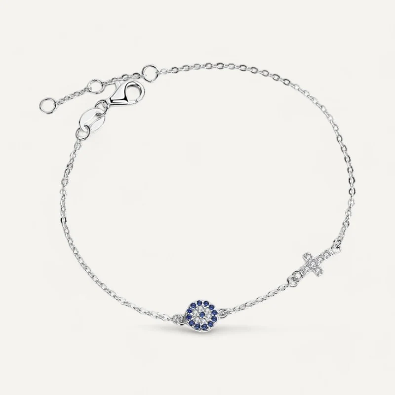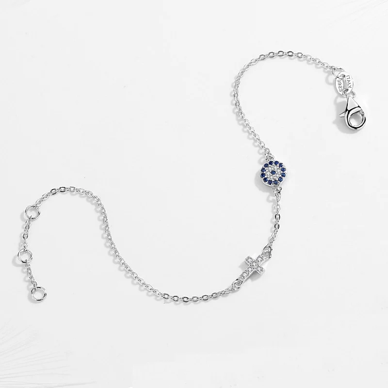 Subilmez votre look avec ce bracelet présentant une croix soigneusement conçue avec un pendentif mauvais œil symbolisant la protection contre le mal.