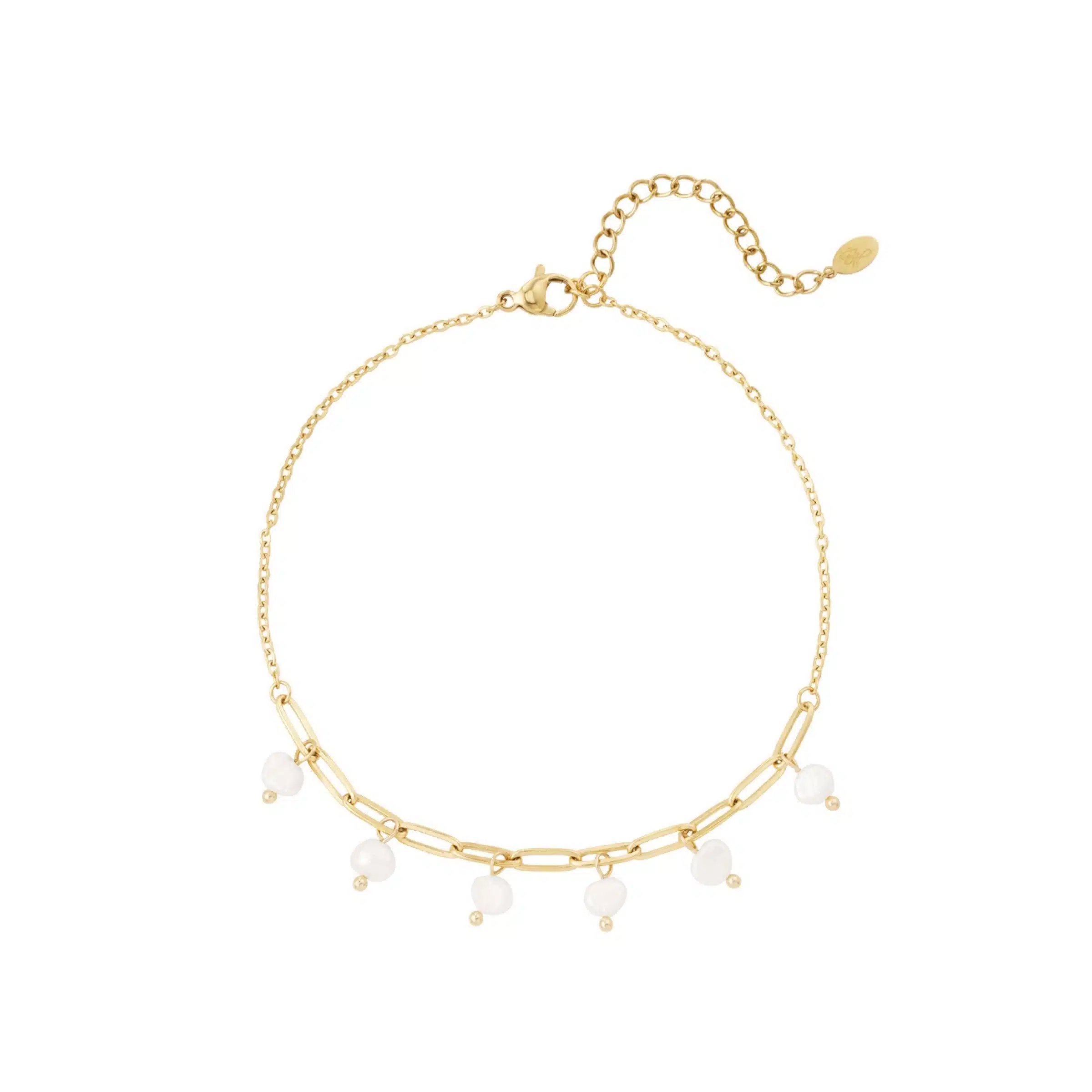 - Bracelet de cheville acier inoxydable composé d’une fine chaine fine ainsi que d’une chaine à grosse maille rectangulaire avec petits pendentifs de perles d’eau douce