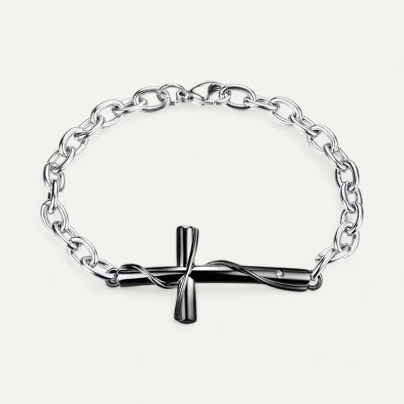 Découvrez la parfaite alliance entre modernité et tradition avec notre bracelet en argent orné d’une croix épurée.