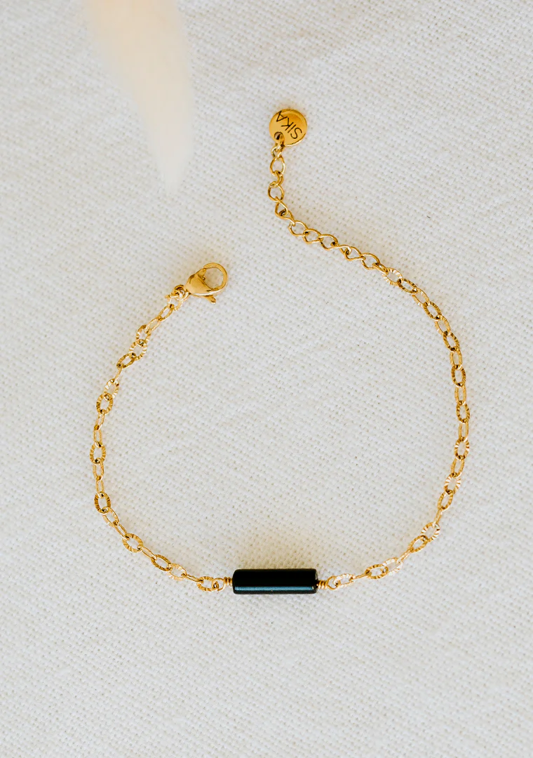 Le bracelet Isa est fabriqué à la main dans mon atelier, Il est composé d’une chaine aux maillons ovales striés ainsi que d’une Agate noire,