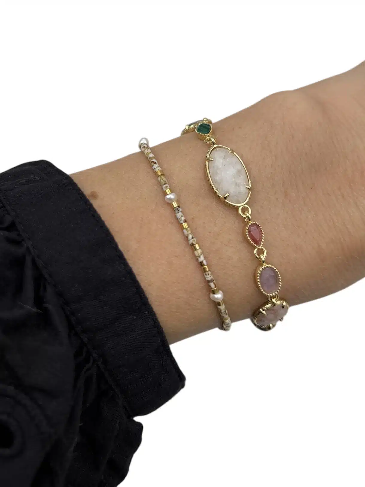 Sur la seconde photo, le bracelet Juliette est porté en accumulation au brecelet Elisa > Découvrez le bracelet Elisa en suivant ce lien