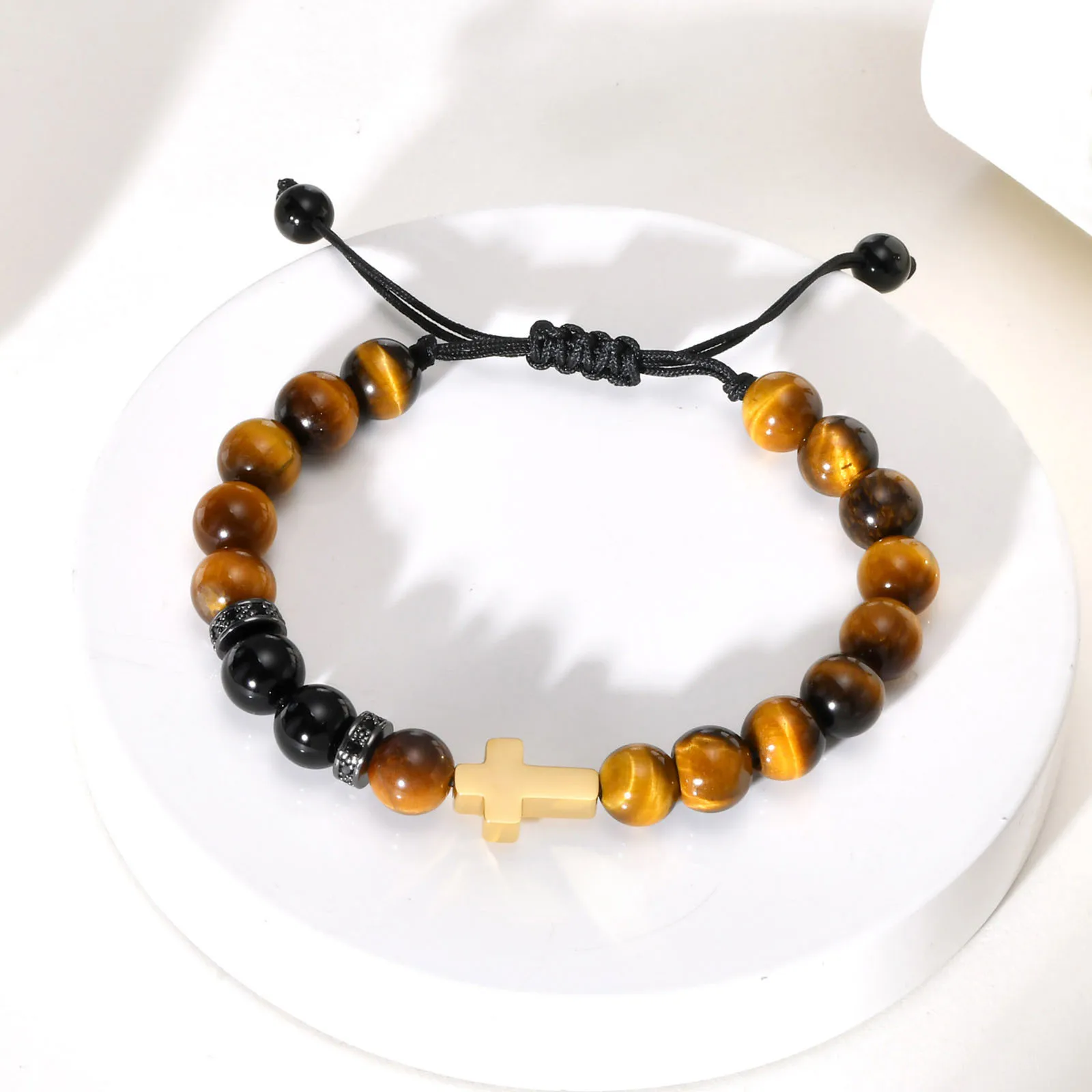 Élégant et sophistiqué, ce bracelet en œil de tigre est agrémenté d’une croix dorée, apportant une touche spirituelle et chic à votre poignet. Les perles en œil de tigre, connues pour leurs propriétés protectrices, sont parfaites pour ceux qui cherchent à allier style et bien-être.