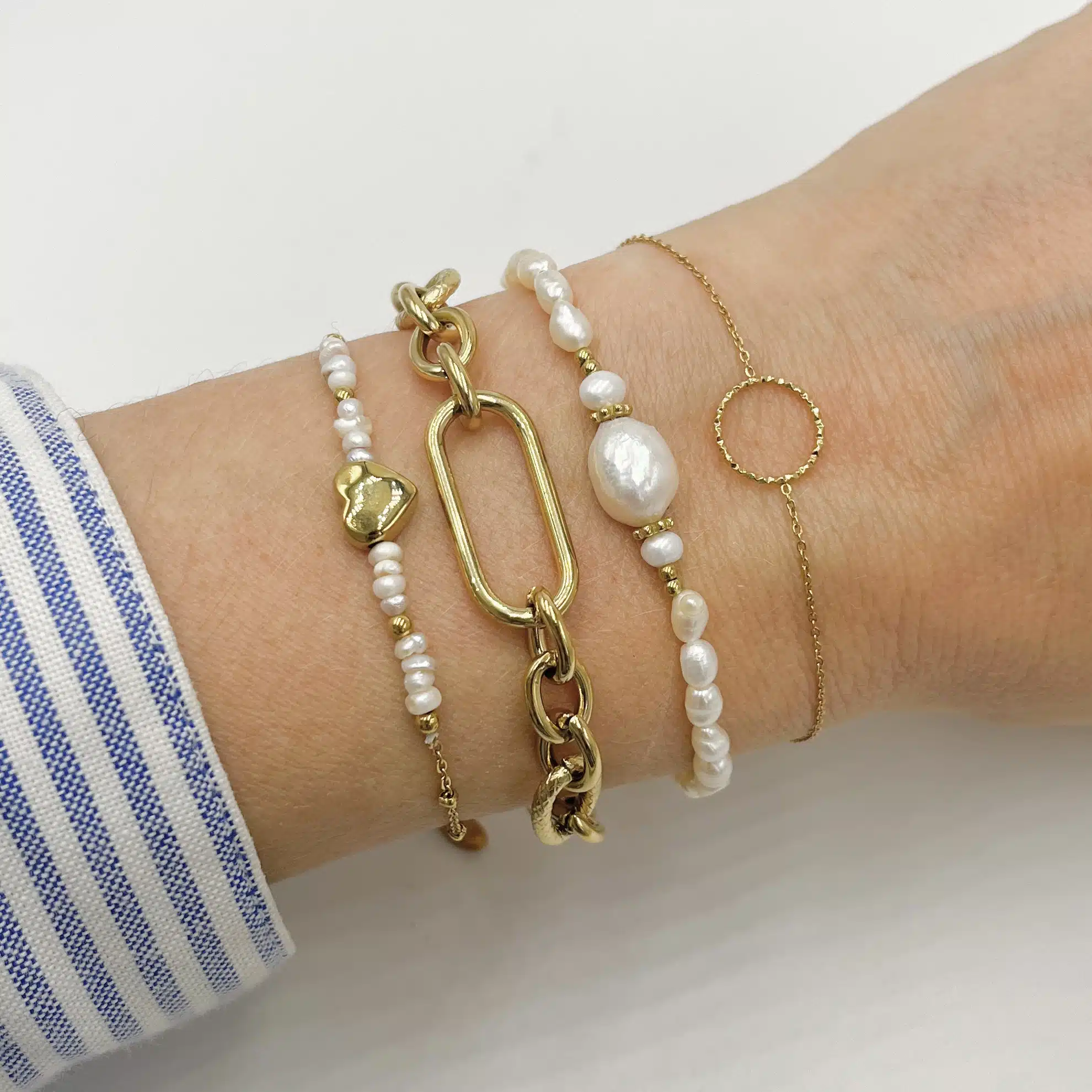 Bracelet acier inoxydable or avec perles d’eau douce