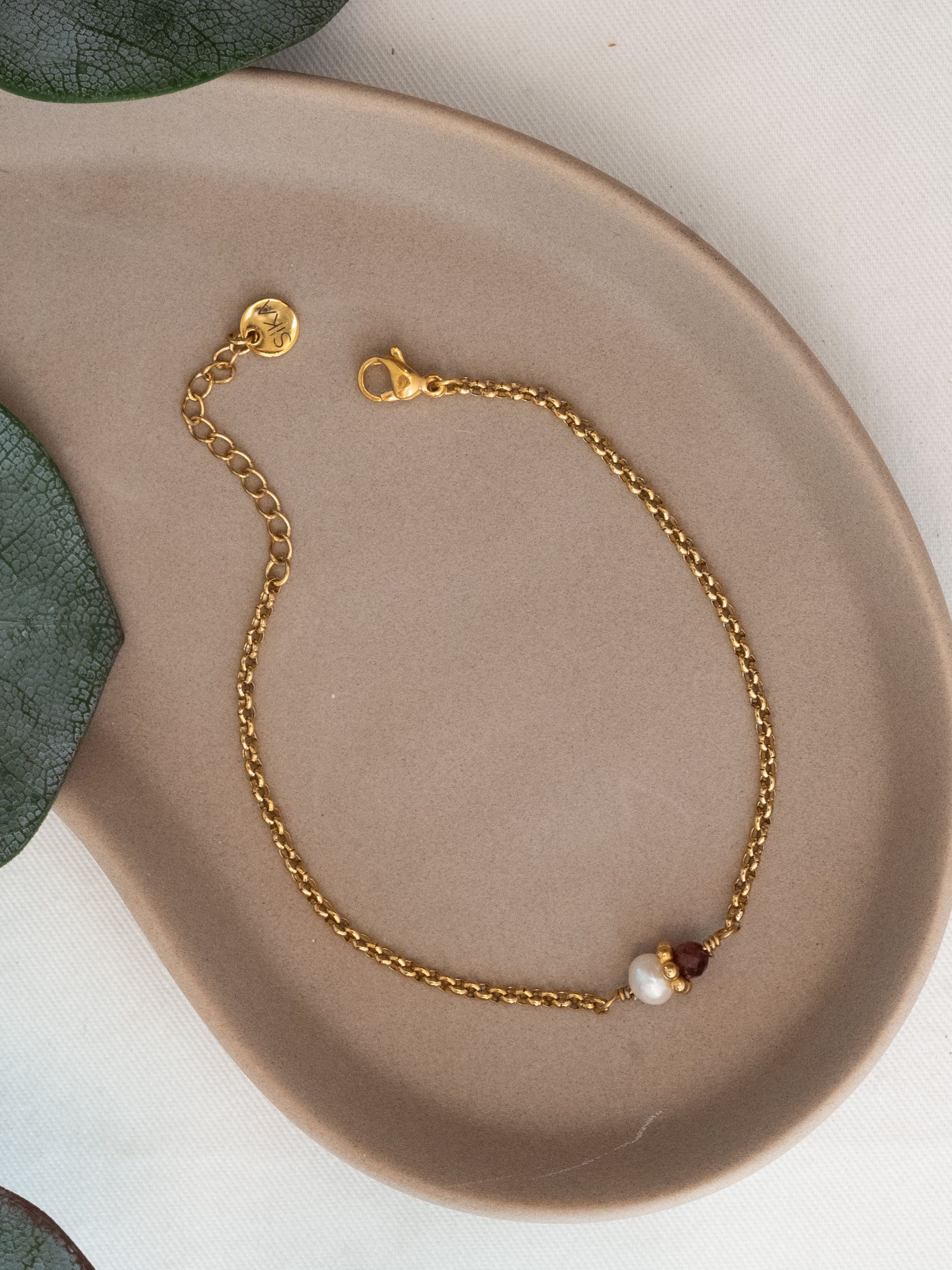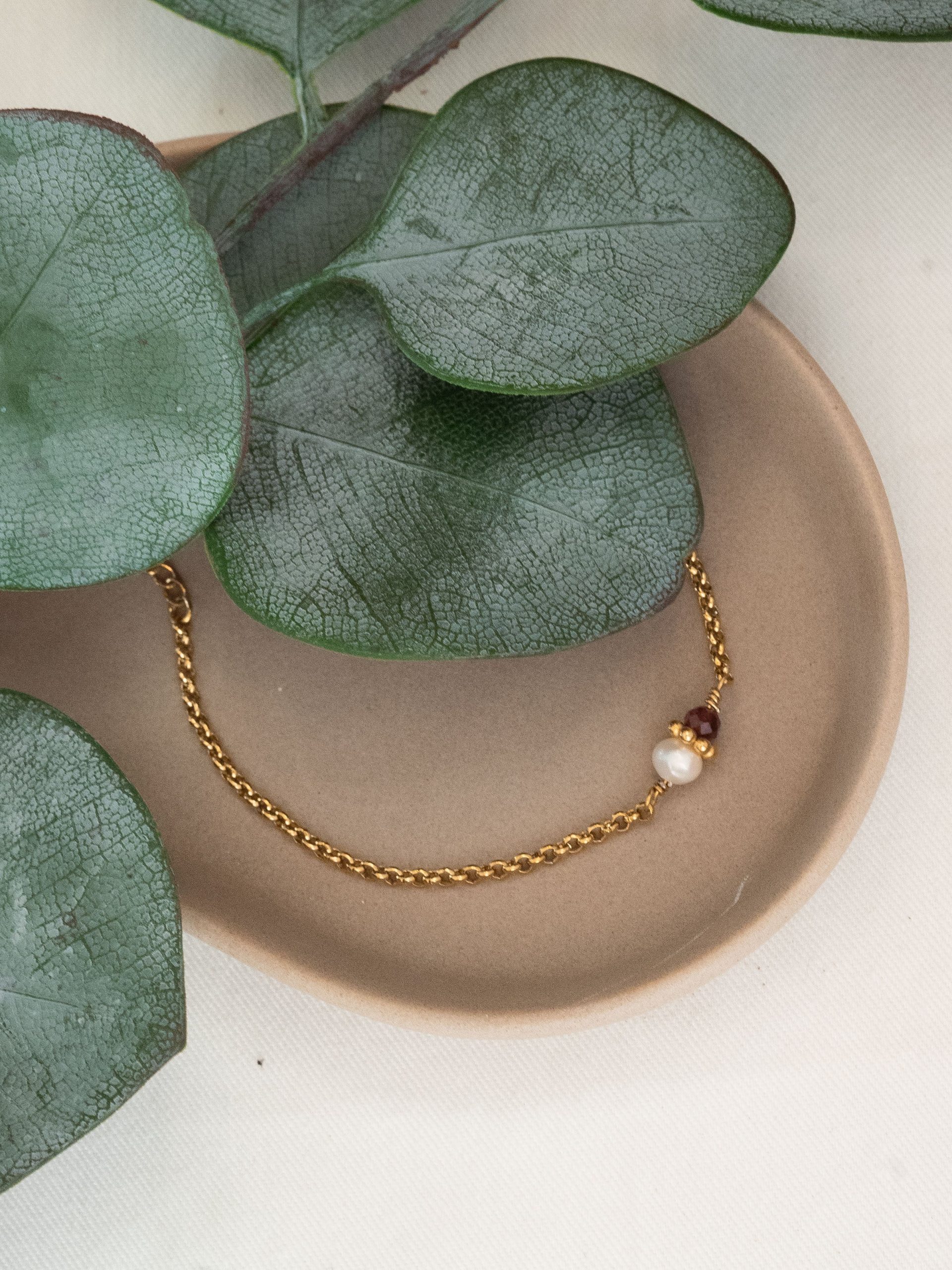 Le bracelet Tisha est fabriqué à la main dans mon atelier. Il est composé d’une chaîne aux maillons ronds, d’une Perle d’eau douce et d’un Grenat.