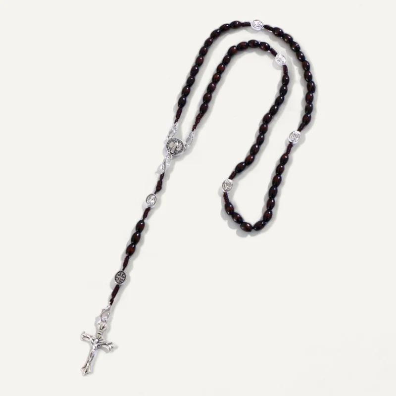 Ce chapelet chrétien allie dévotion et finesse avec ses perles sombres et détails argentés. Un objet à la fois spirituel et élégant, il est parfait pour les moments de prière et pour exprimer sa foi avec style dans la vie quotidienne.