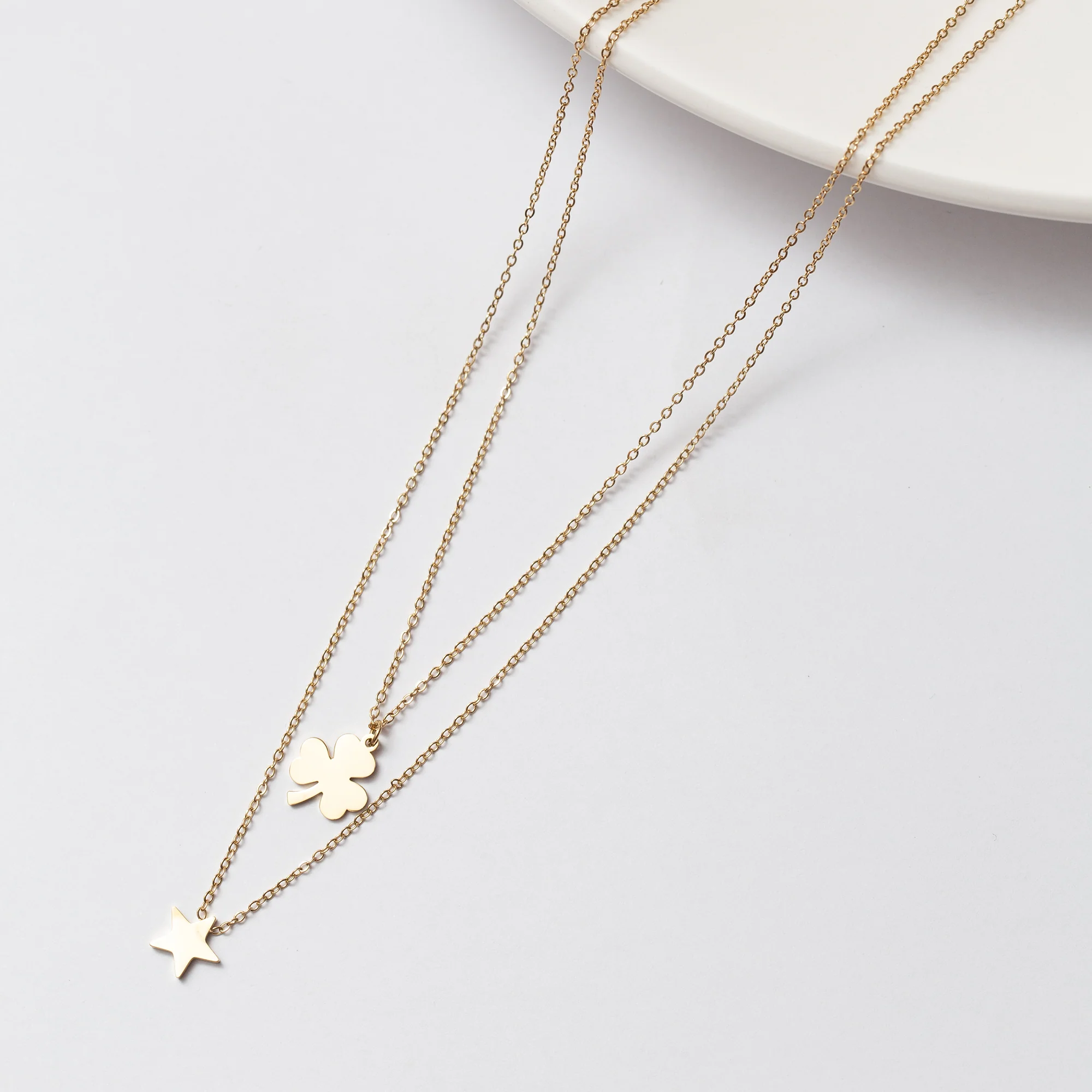 Collier Acier Doré tendance 2 lignes de chaines ⛓️⛓️