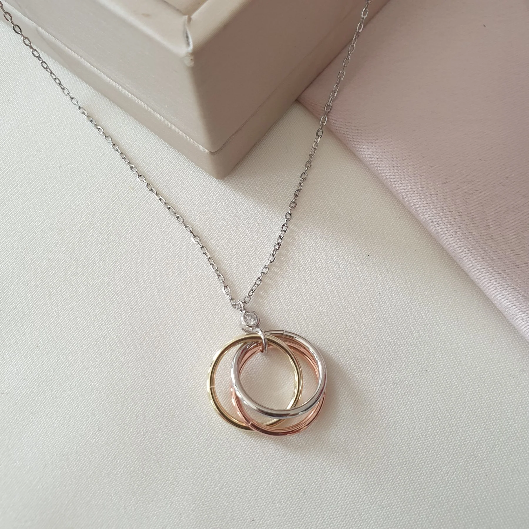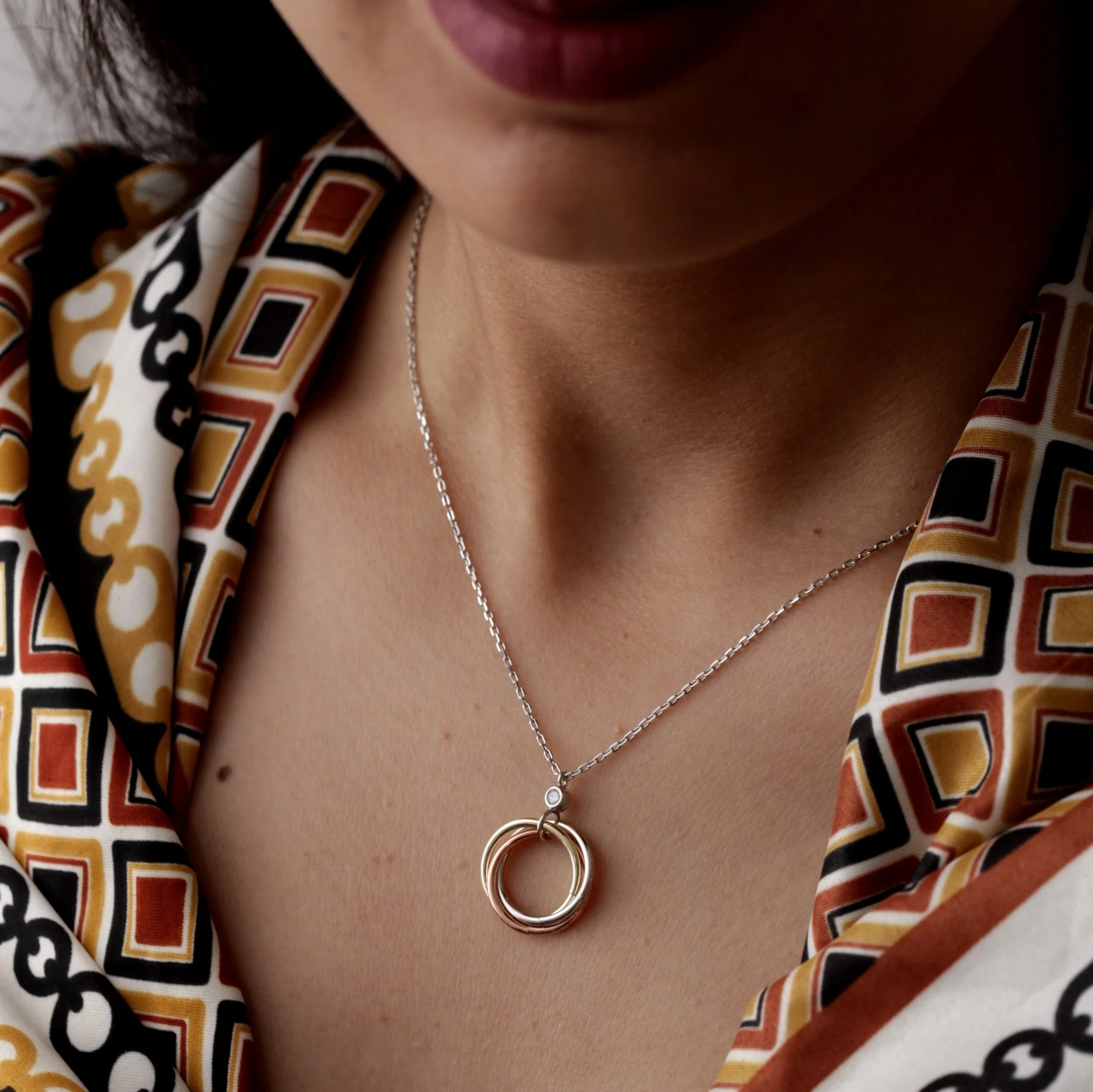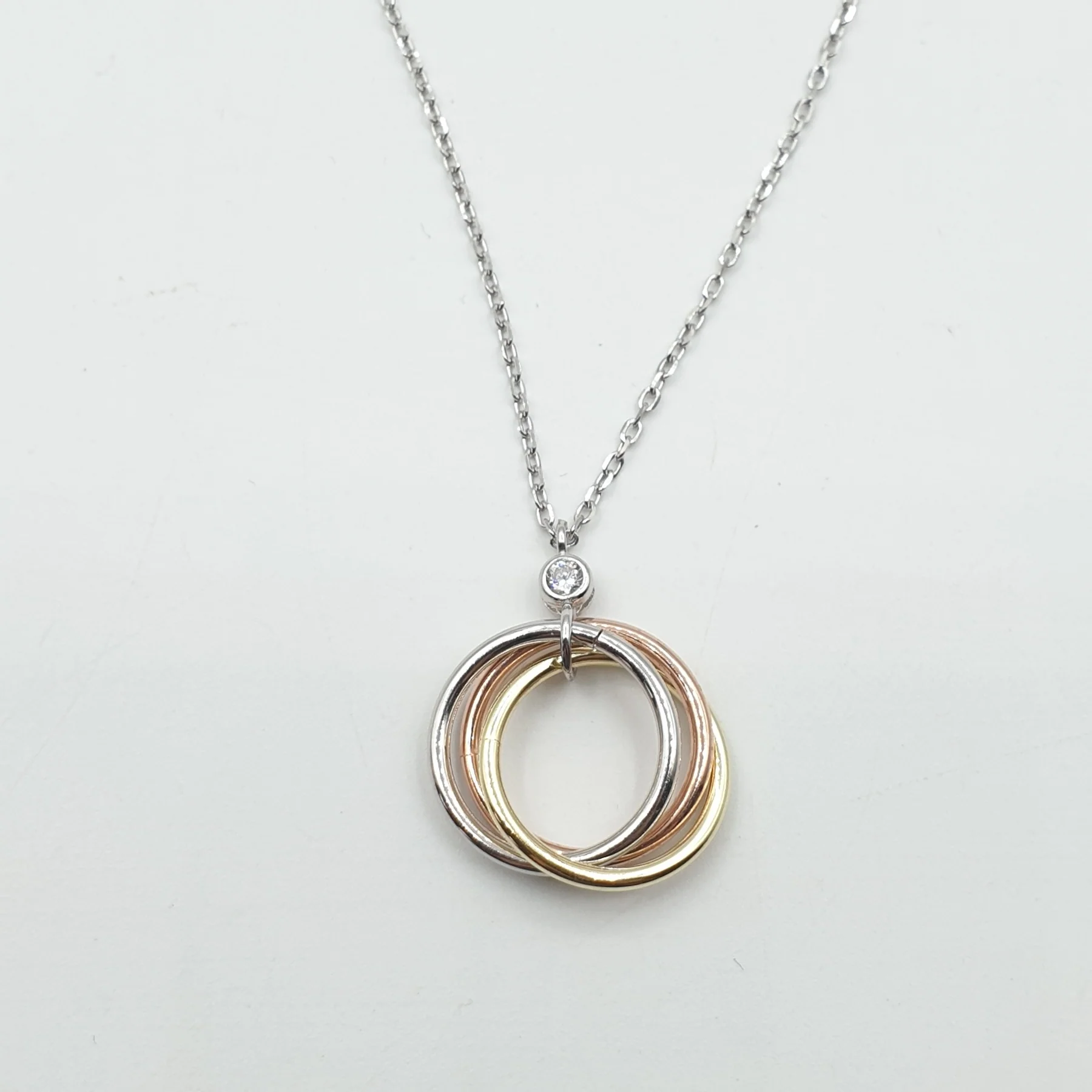 Collier argent Rhodié Garanti 3 cercles 3 tons sans pierres