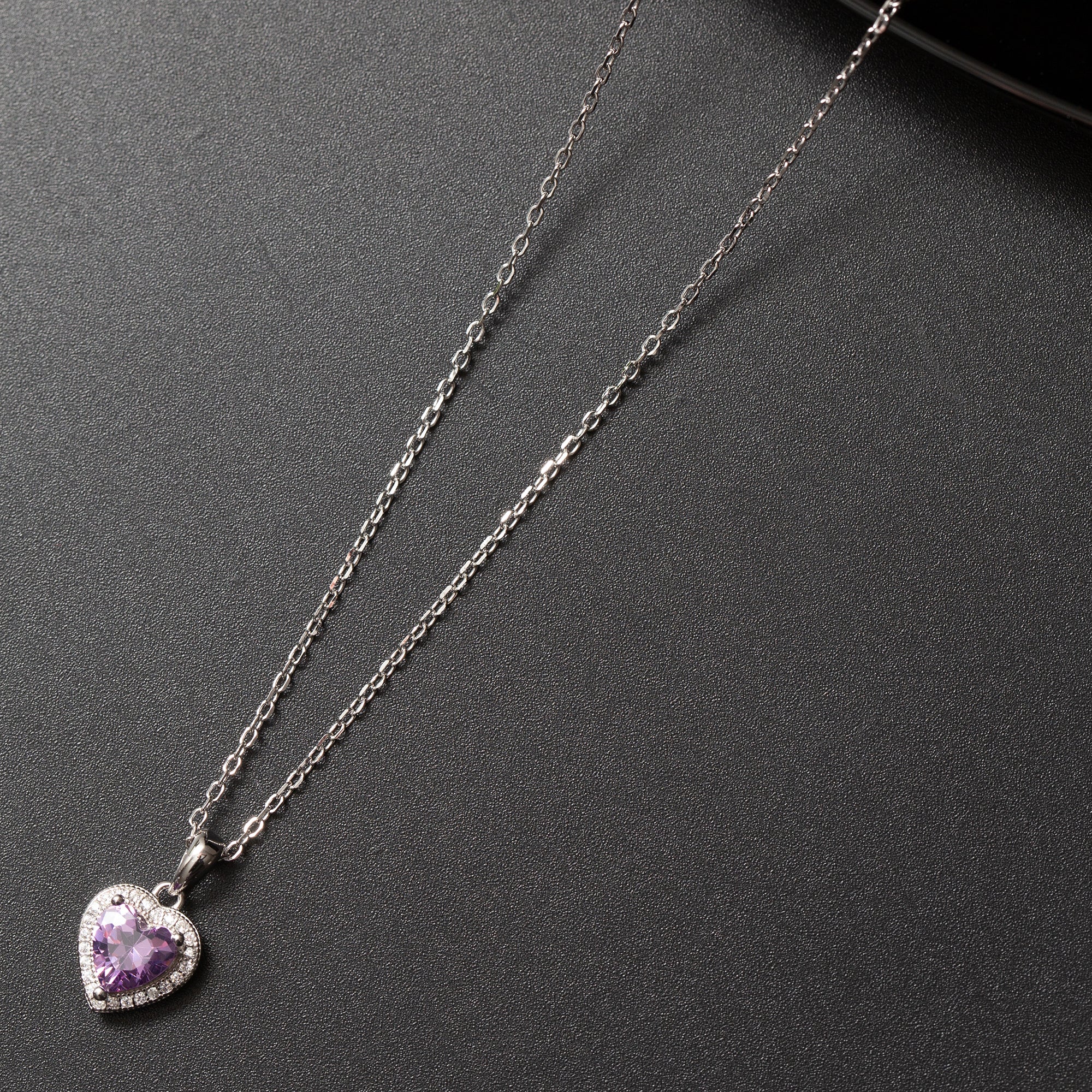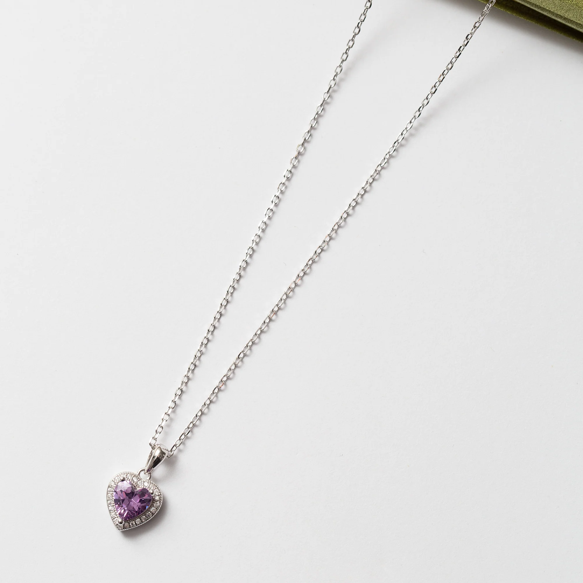 Collier Argent rhodié Pandora tendance. Motif cœur mauve