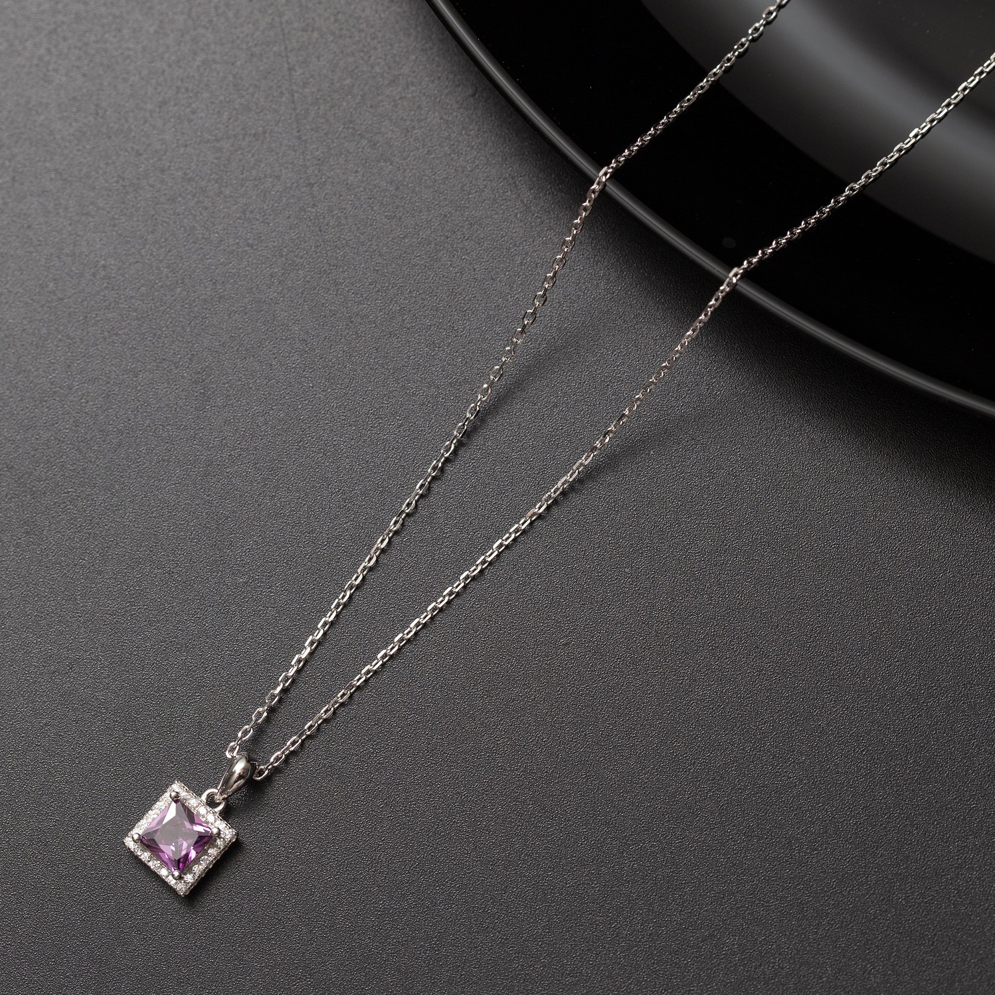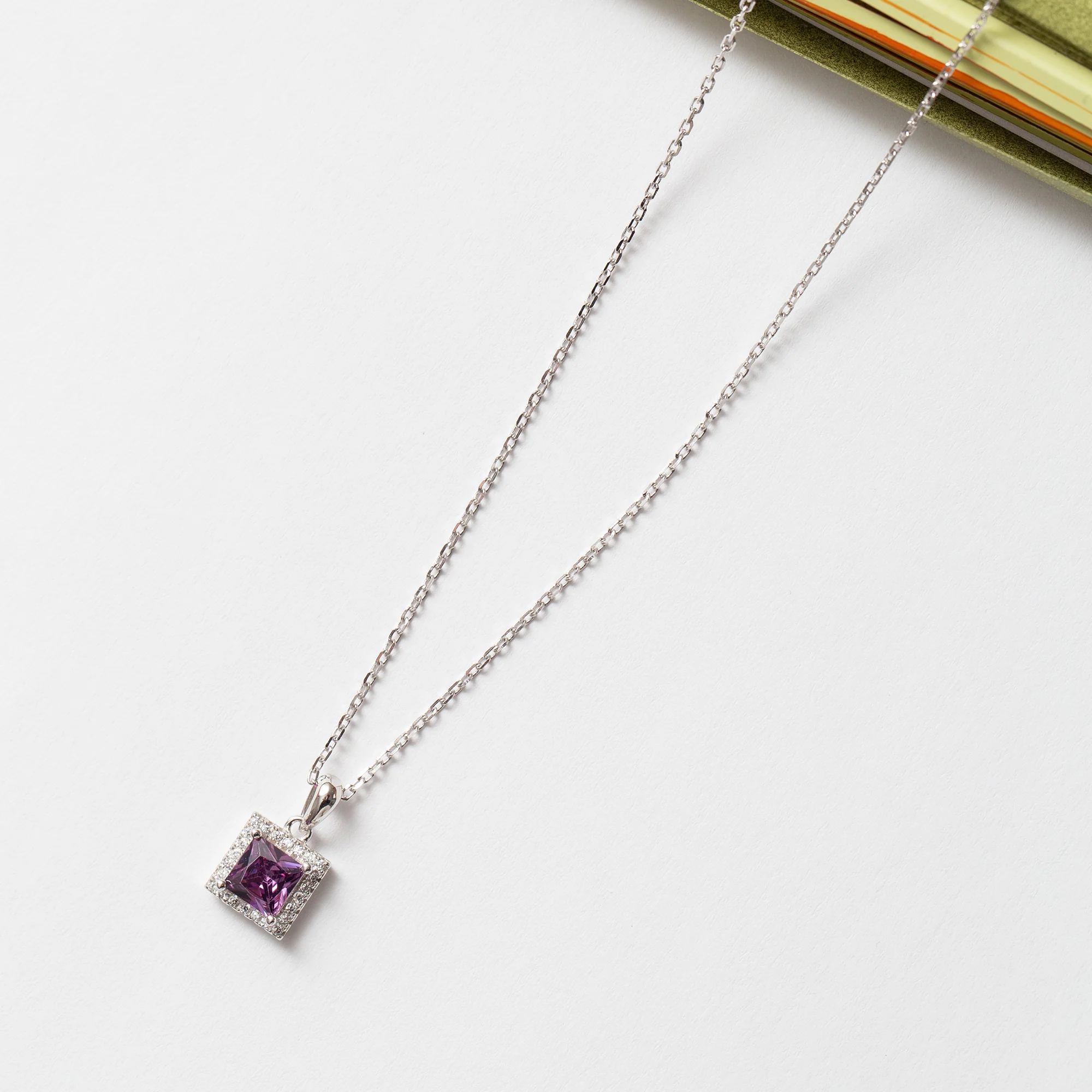 Collier Argent Rhodié tendance avec motif mauve