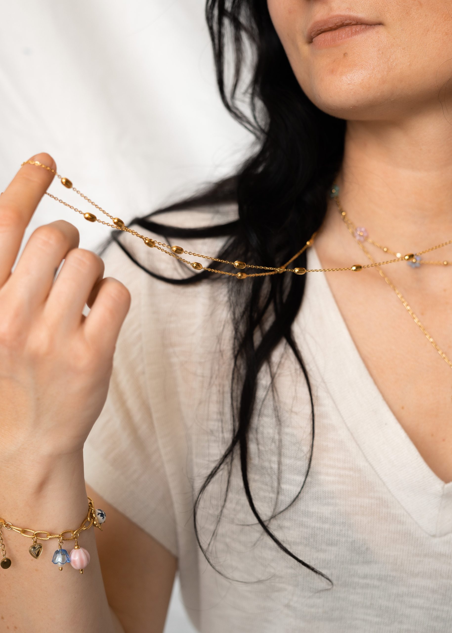 Le collier Grany est fabriqué à la main dans mon atelier, Il est monté sur une chaîne fine et orné de perles ovales,
