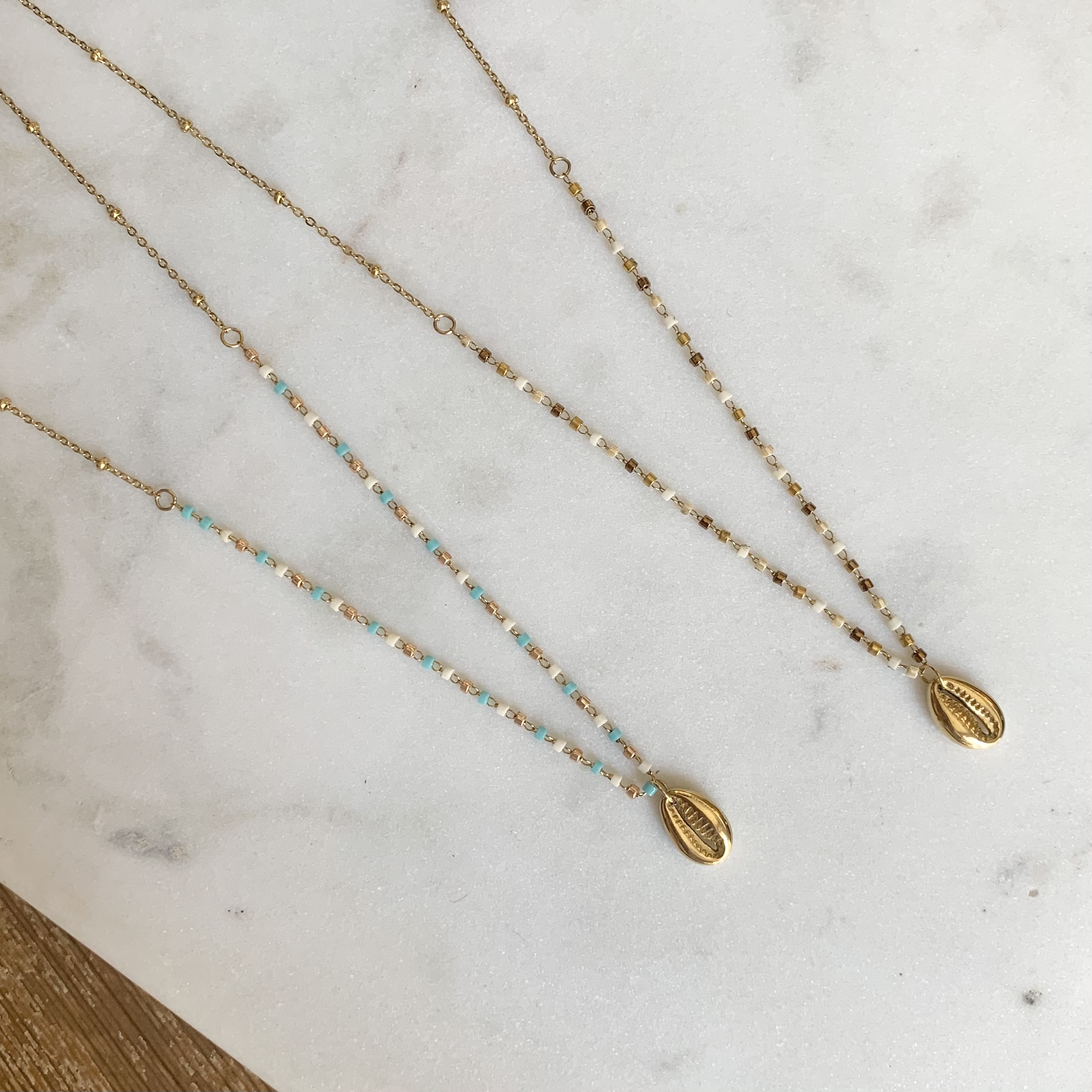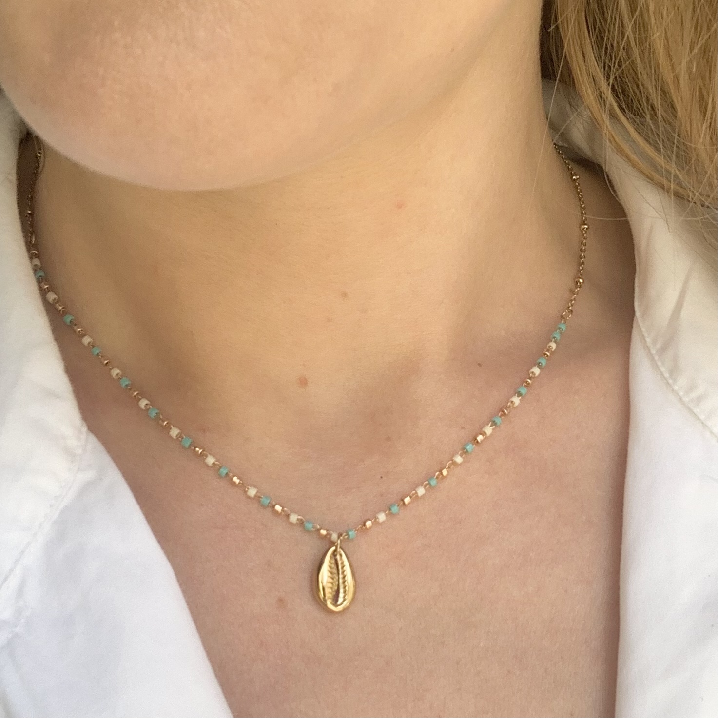 On adore sa jolie chaine travaillée et son pendentif en forme de coquillage.