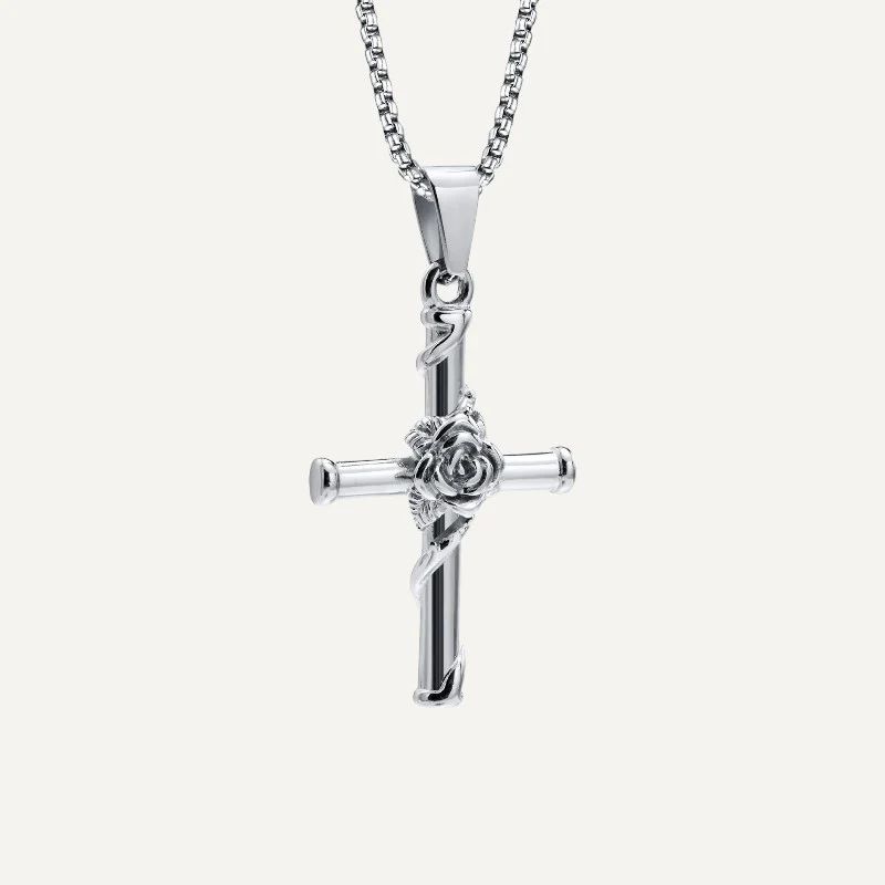 Collier Croix Homme avec Pendentif Croix Rose qui allie élégance et raffinement.