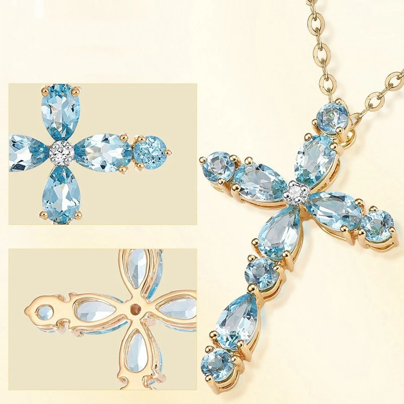 Cette magnifique collier croix arbore une teinte céleste captivante qui évoque la sérénité du ciel. Fabriqué avec soin, ce collier allie un design intemporel à une touche contemporaine.