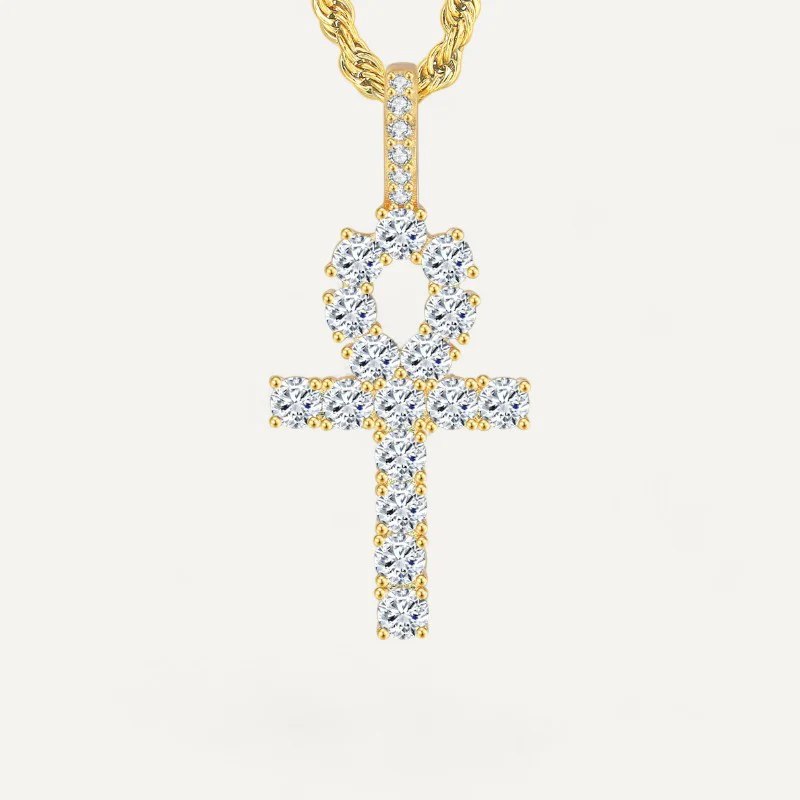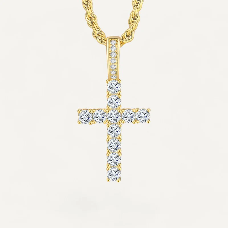 La croix est ornée de cristaux en zirconium, scintillant avec une brillance hypnotique. Ces cristaux ajoutent une touche de glamour tout en conservant une esthétique raffinée et équilibrée.