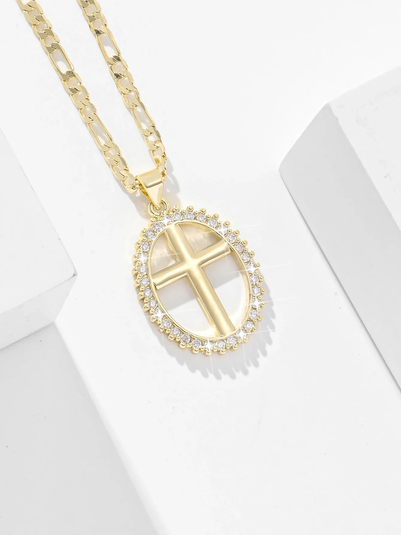 Ce Collier Croix Ovale Doré Éclat Cristal, au pendentif serti de cristaux scintillants, incarne la foi avec une élégance moderne.