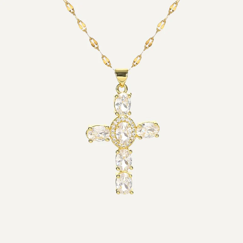 Ce collier allie l’élégance intemporelle à une symbolique profonde. Orné de zirconiums, il brille avec une beauté éclatante tout en représentant la foi et la spiritualité.