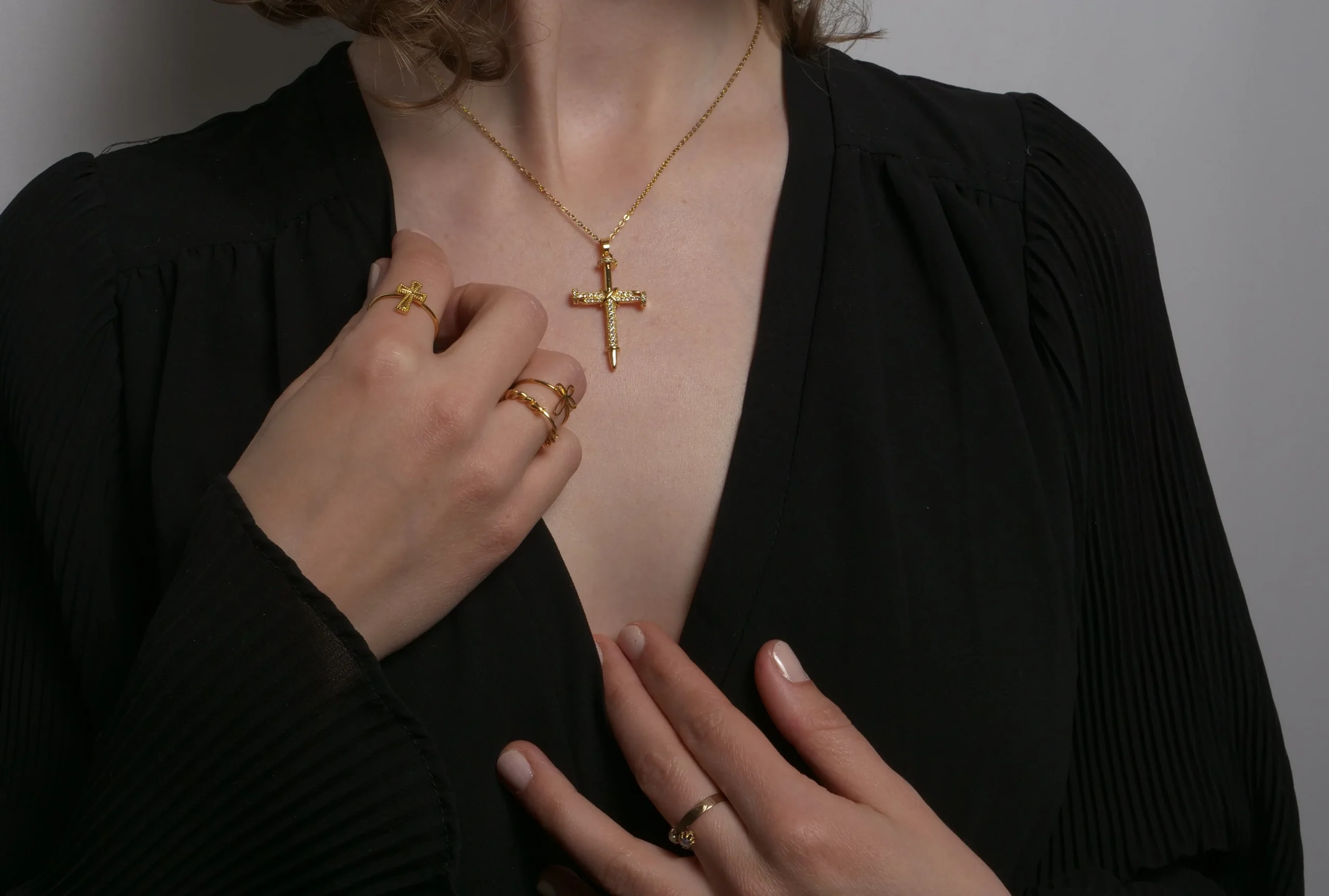 Le collier croix Scintillante est une véritable déclaration de style, avec des cristaux finement sertis qui créent un éclat incomparable. Que vous choisissiez le modèle argenté ou doré, il apportera un éclat divin et un symbole de foi à votre look. Portez-le pour illuminer vos moments les plus spéciaux et laisser son message spirituel rayonner à chaque mouvement.