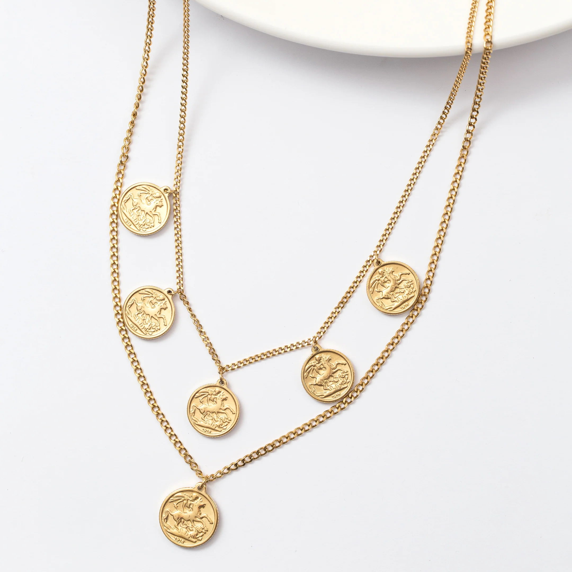 Collier en acier à deux rangs de chaîne et pleins de motifs