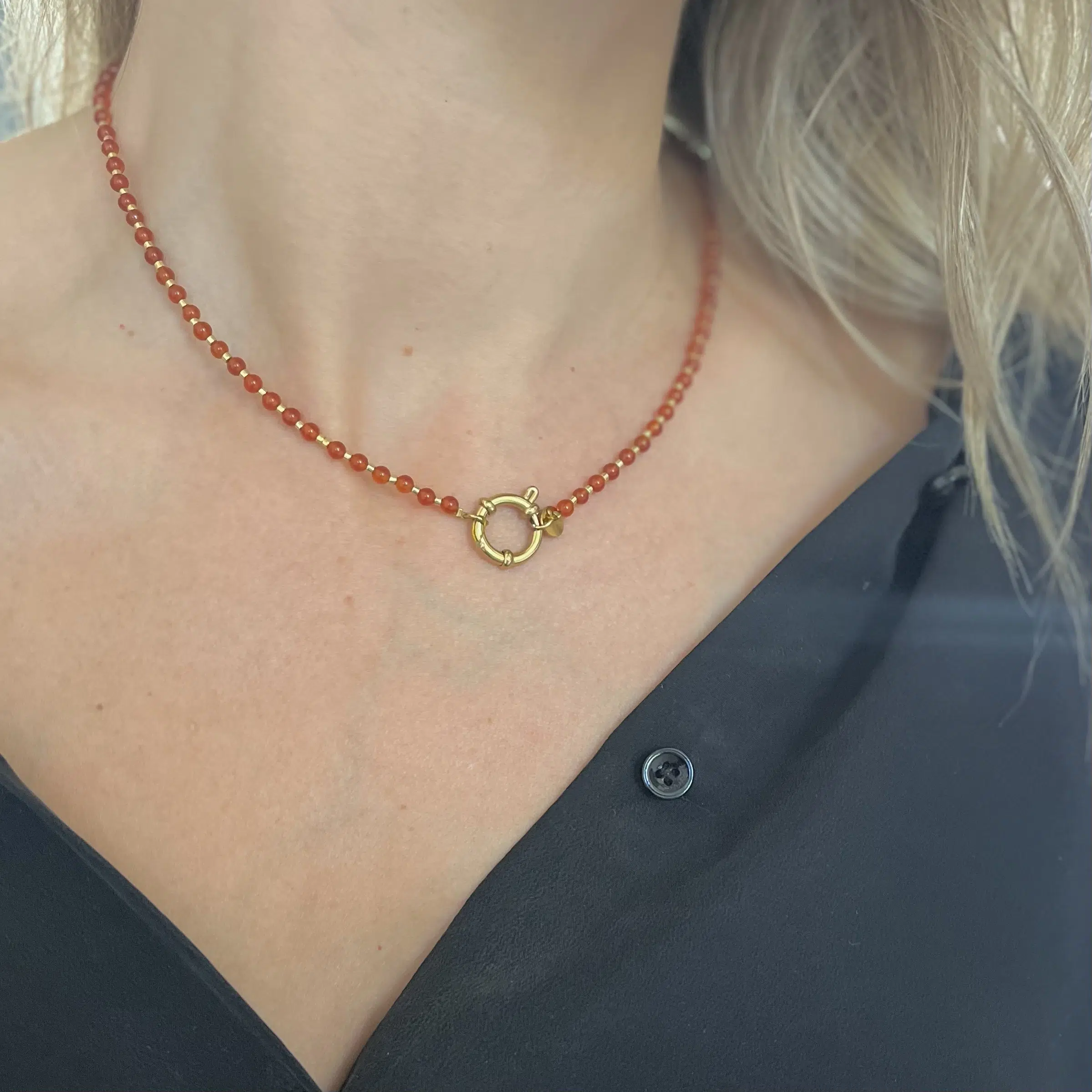 - Joli collier composé d’une multitude de petites perles de pierres naturelles et d’un fermoir ultra rétro tendance (fermoir mousqueton)